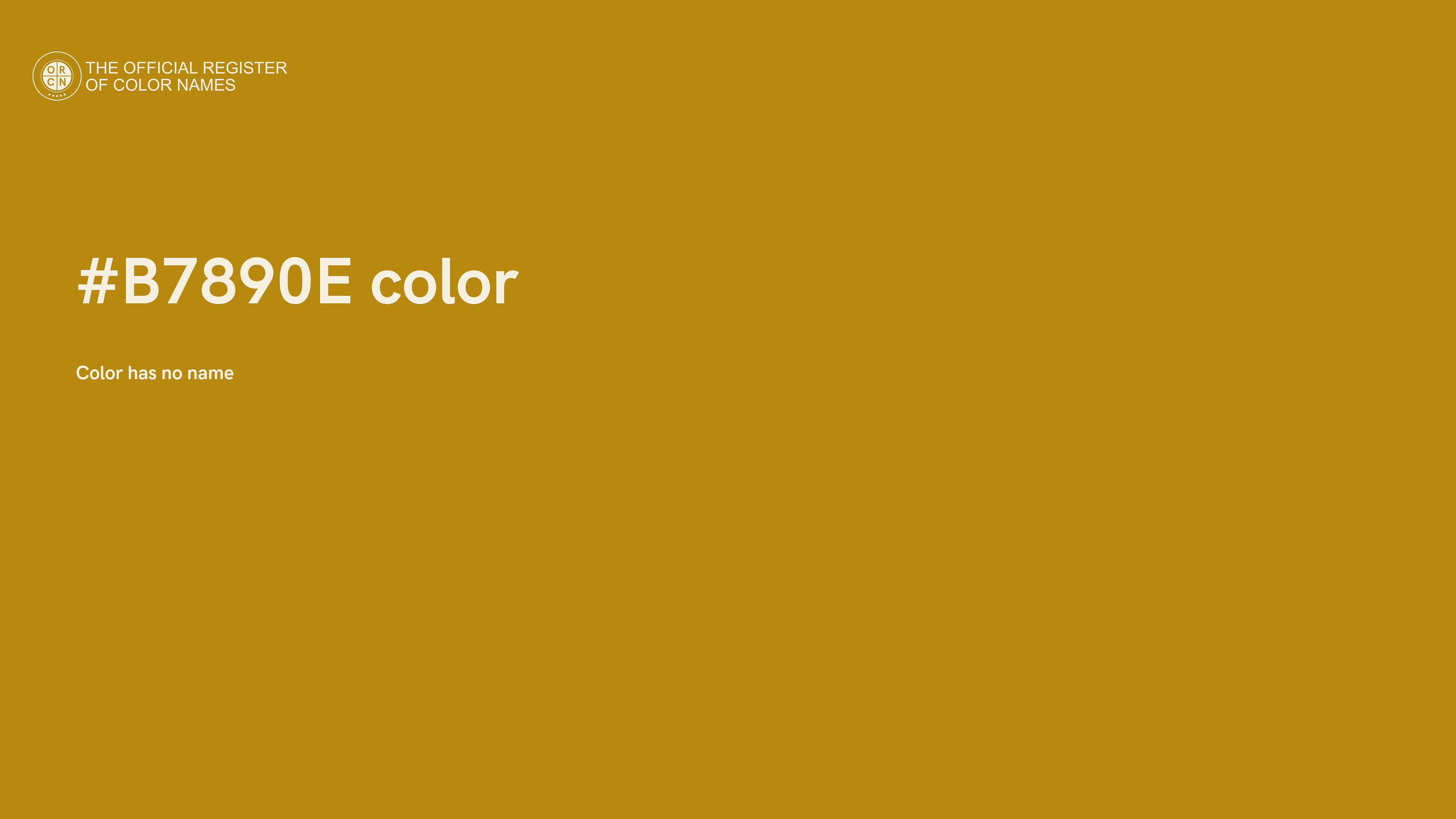 The digital color HEX #B7890E belongs to the Orange Color Family featuring Full Saturation (Saturation Family) and Neutral (Brightness Family).