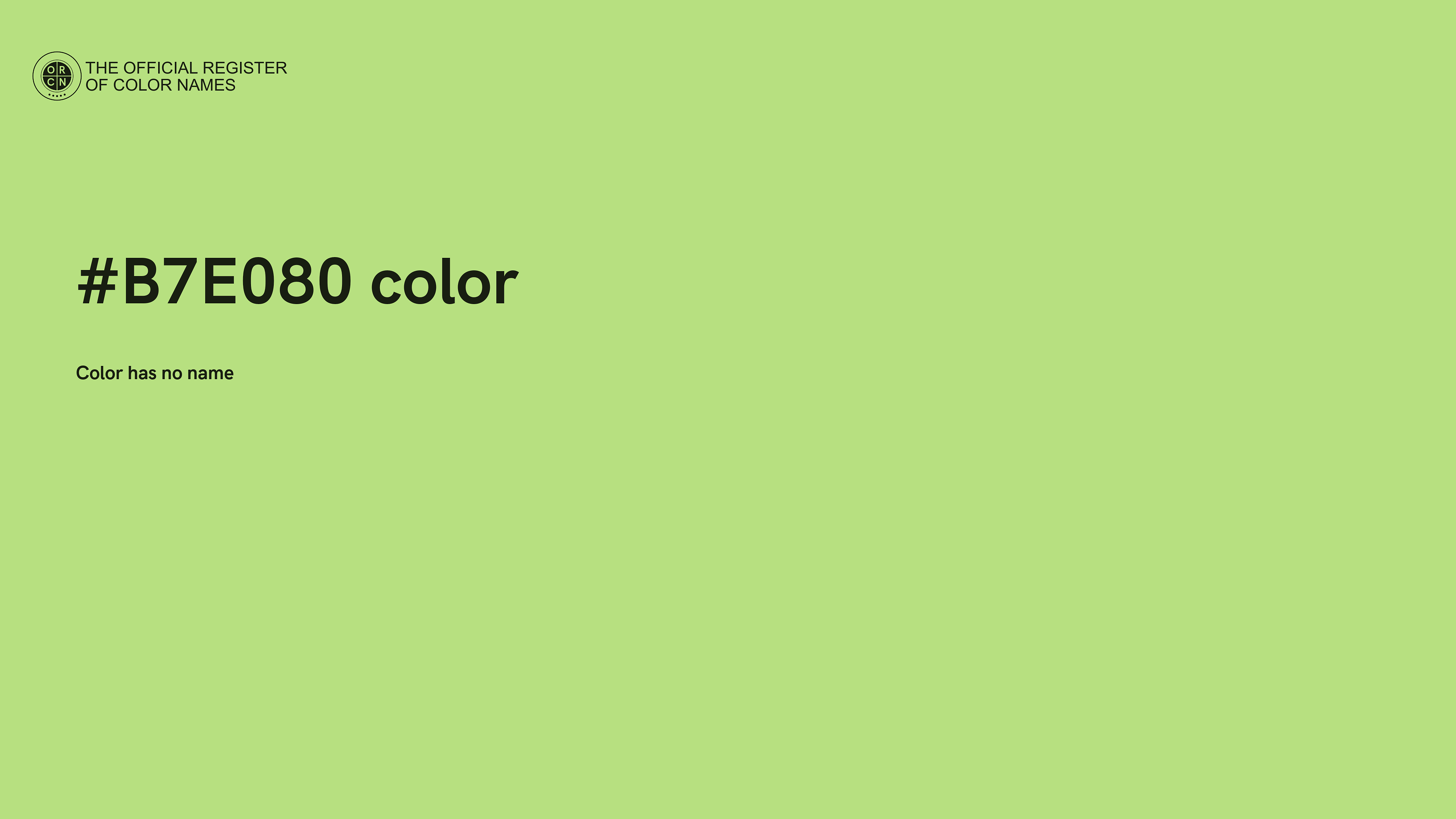 The digital color HEX #B7E080 belongs to the Chartreuse Color Family featuring High Saturation (Saturation Family) and Very Light (Brightness Family).