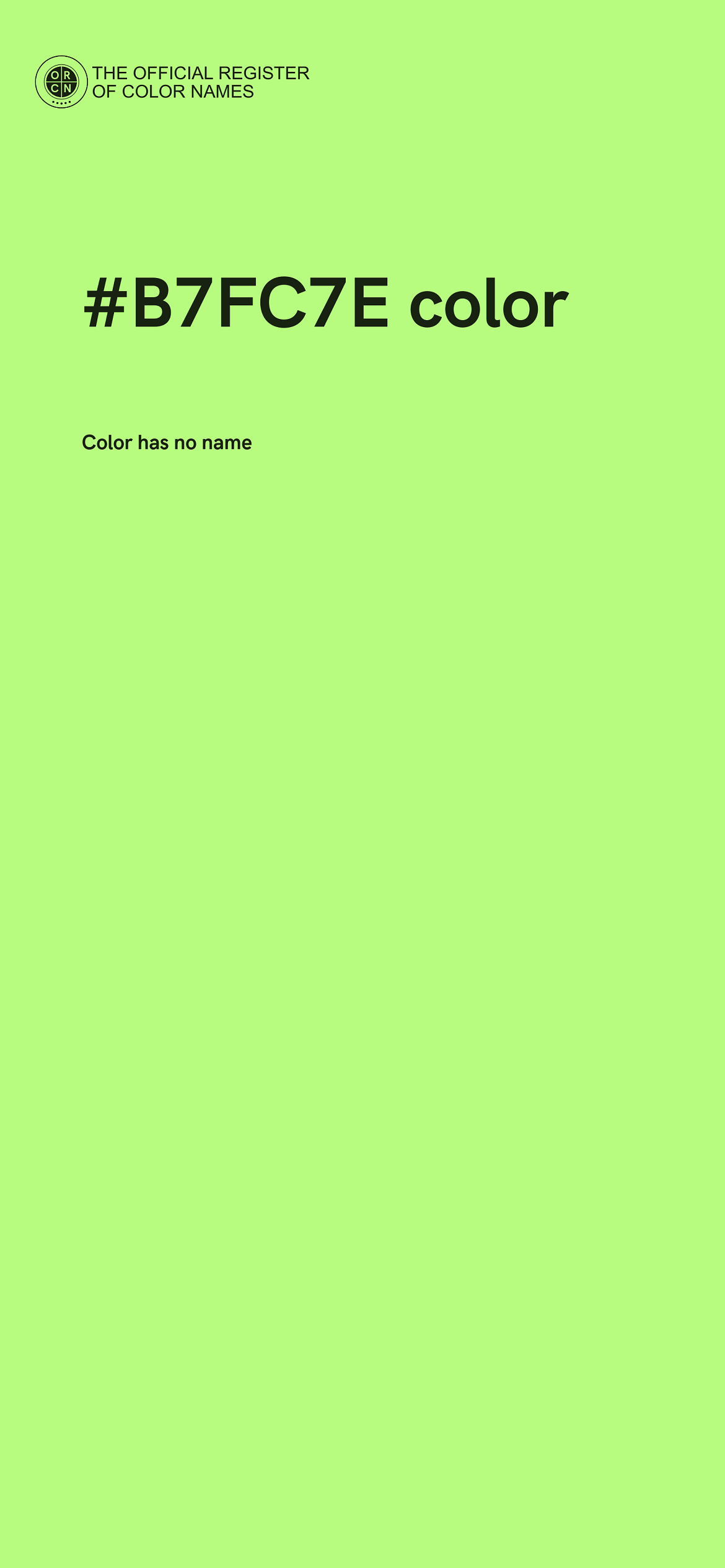 For printing in non digital world, #B7FC7E is represented in CMYK as 27 Cyan, 0 Magenta, 49 Yellow, and 1 Black (Key) (C:27 M:0 Y:49 K:1).