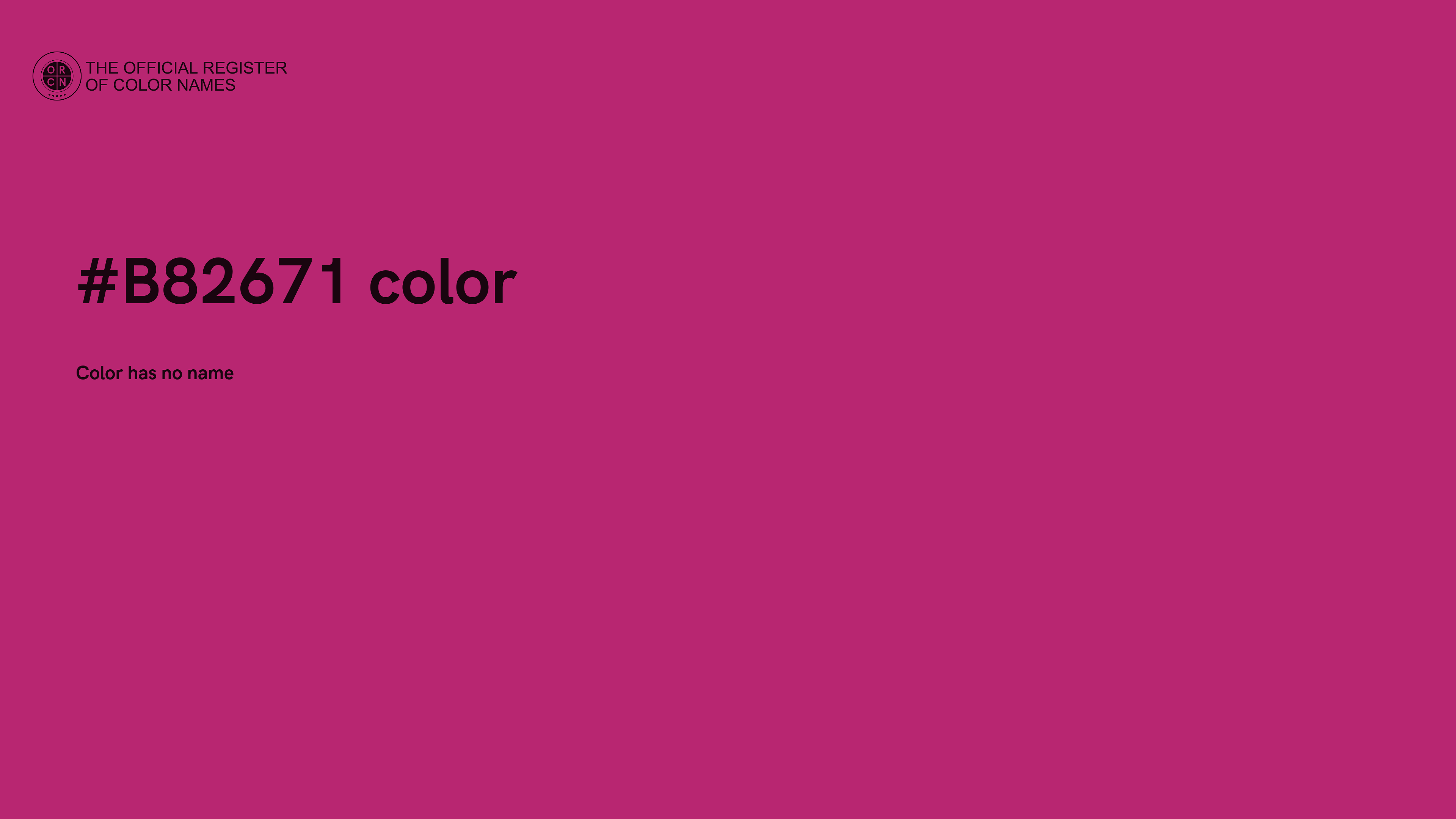 For printing in non digital world, #B82671 is represented in CMYK as 0 Cyan, 57 Magenta, 28 Yellow, and 28 Black (Key) (C:0 M:57 Y:28 K:28).