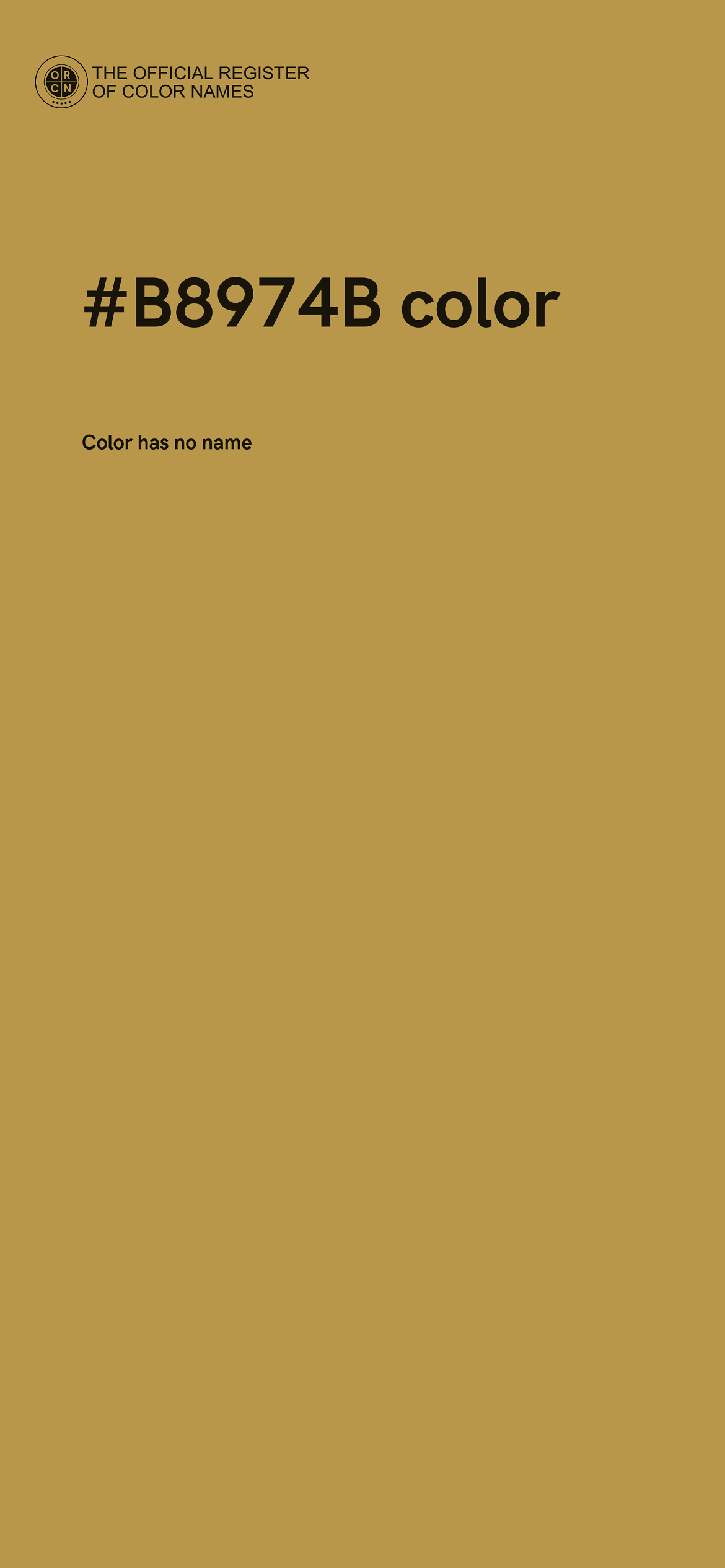 The digital color HEX #B8974B belongs to the Orange Color Family featuring Moderate Saturation (Saturation Family) and Light (Brightness Family).