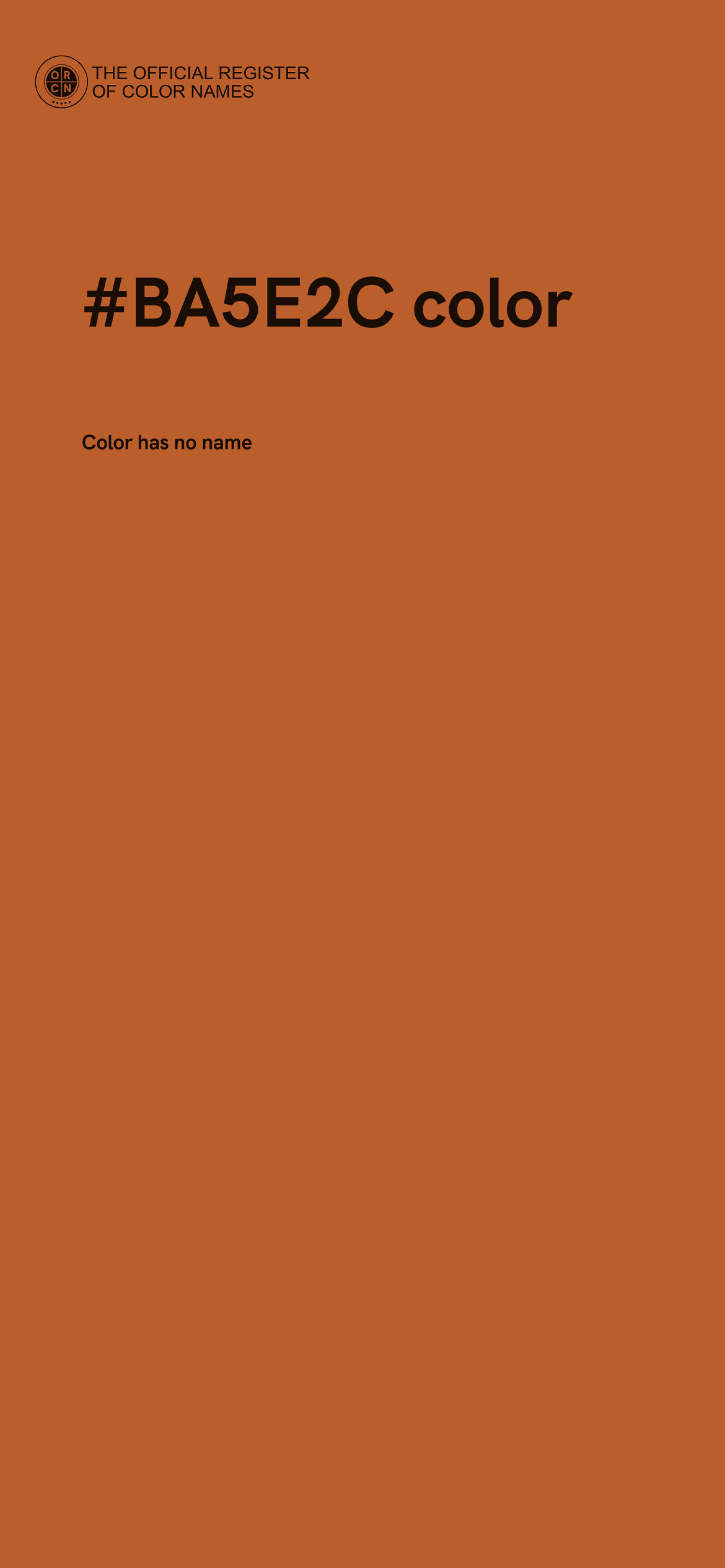 The digital color HEX #BA5E2C belongs to the Orange Color Family featuring High Saturation (Saturation Family) and Light (Brightness Family).