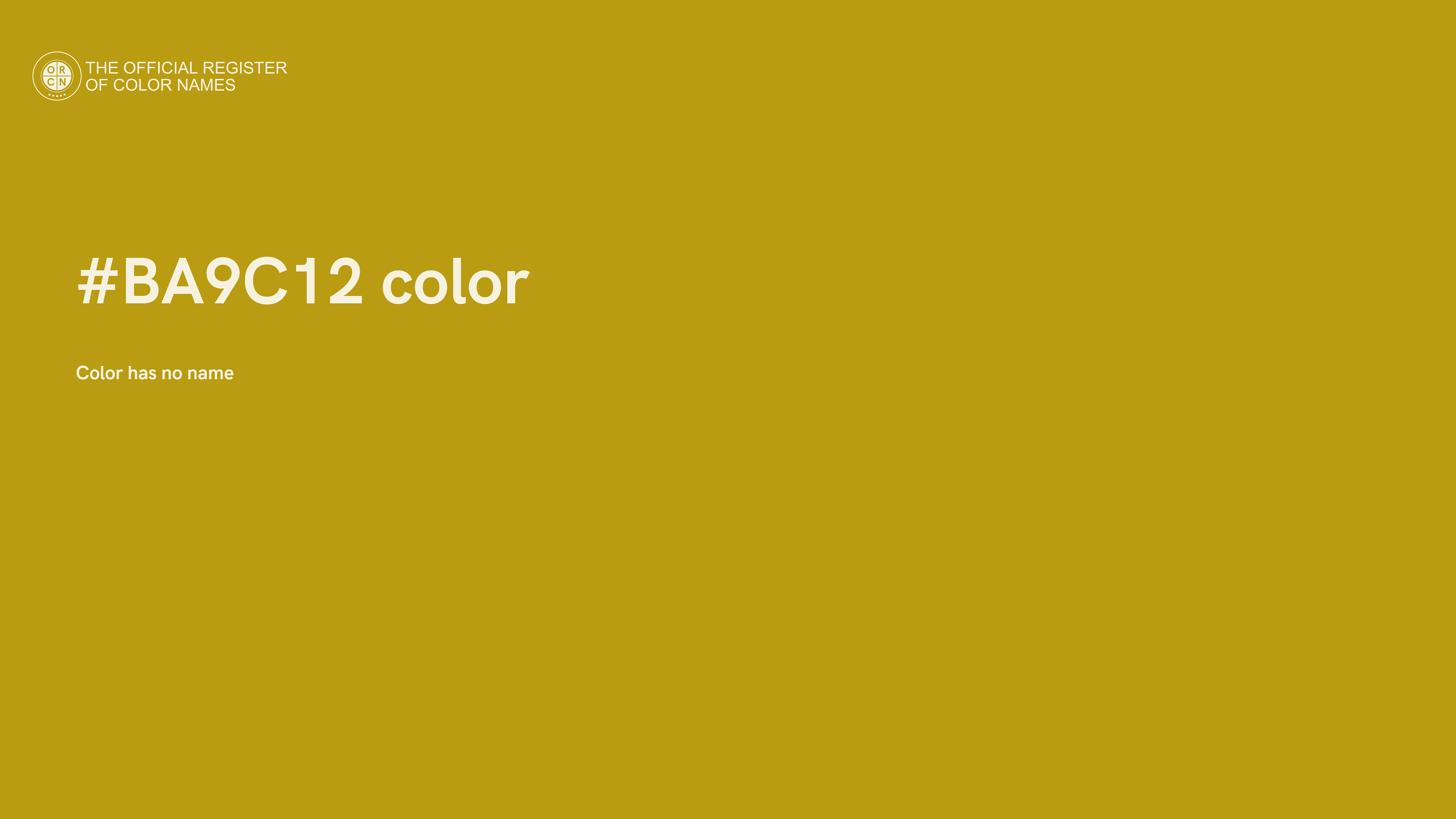 For printing in non digital world, #BA9C12 is represented in CMYK as 0 Cyan, 12 Magenta, 66 Yellow, and 27 Black (Key) (C:0 M:12 Y:66 K:27).