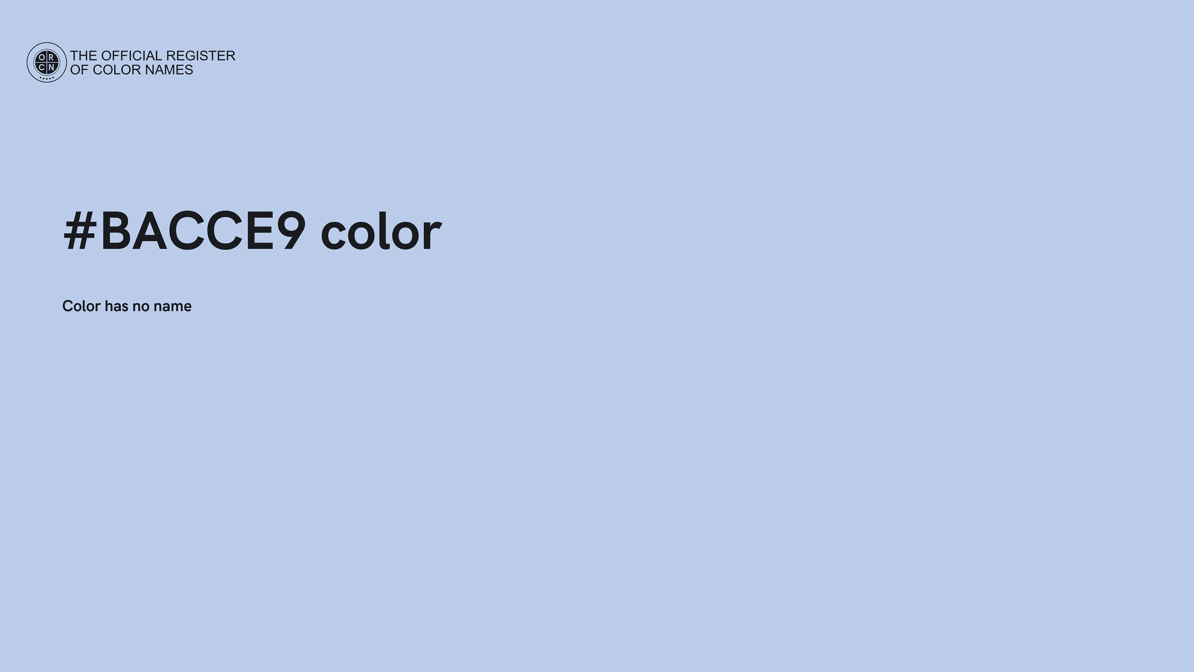 The digital color HEX #BACCE9 belongs to the Azure Color Family featuring Moderate Saturation (Saturation Family) and Very Light (Brightness Family).