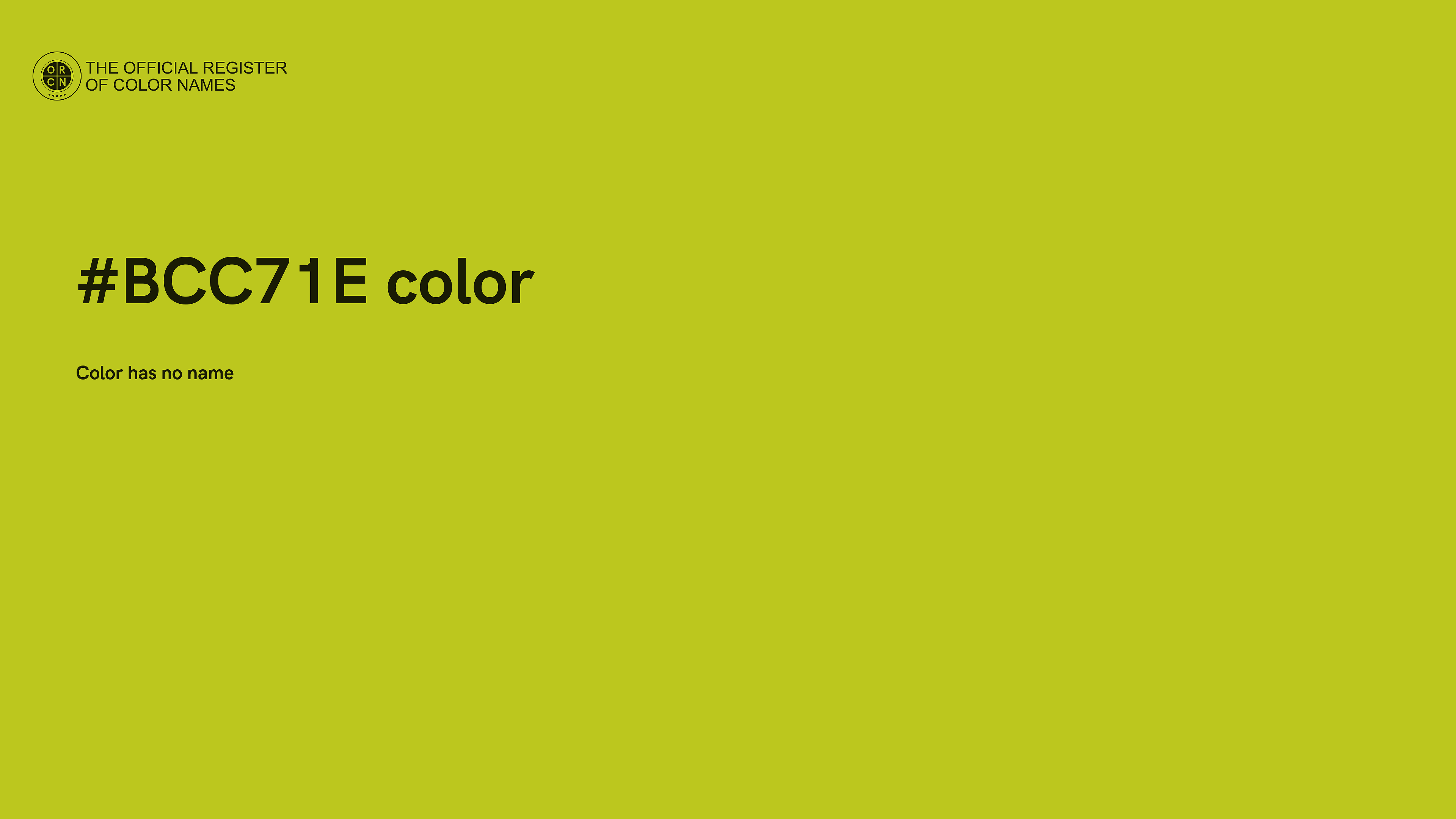 The digital color HEX #BCC71E belongs to the Yellow Color Family featuring High Saturation (Saturation Family) and Light (Brightness Family).
