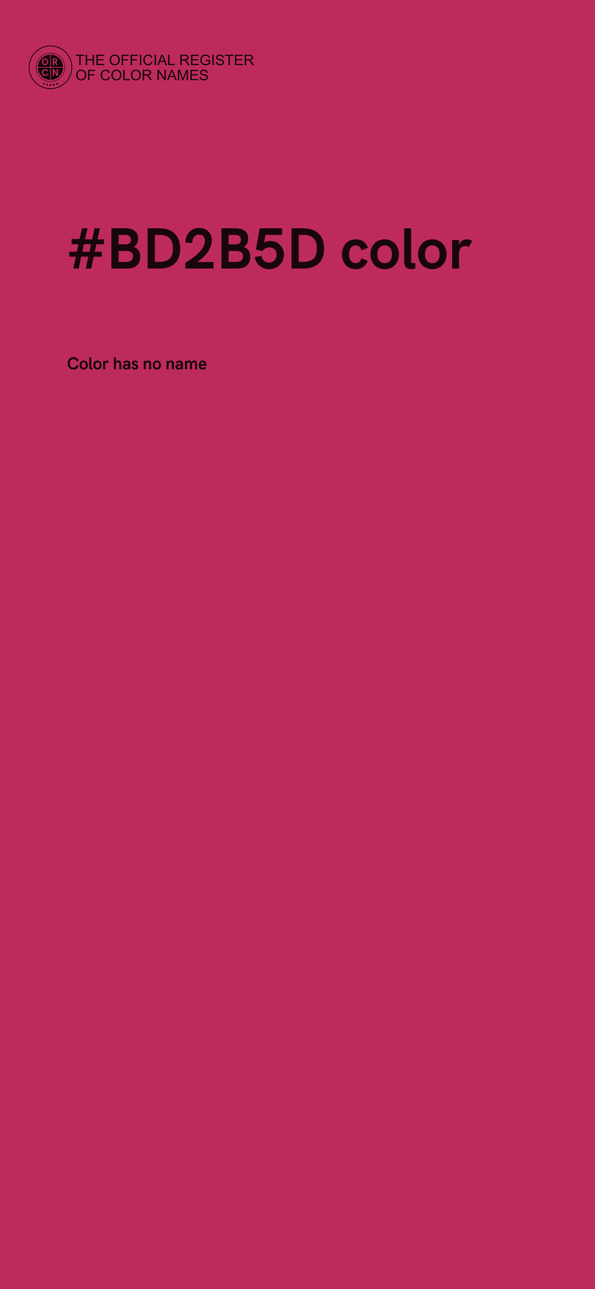 For printing in non digital world, #BD2B5D is represented in CMYK as 0 Cyan, 57 Magenta, 38 Yellow, and 26 Black (Key) (C:0 M:57 Y:38 K:26).