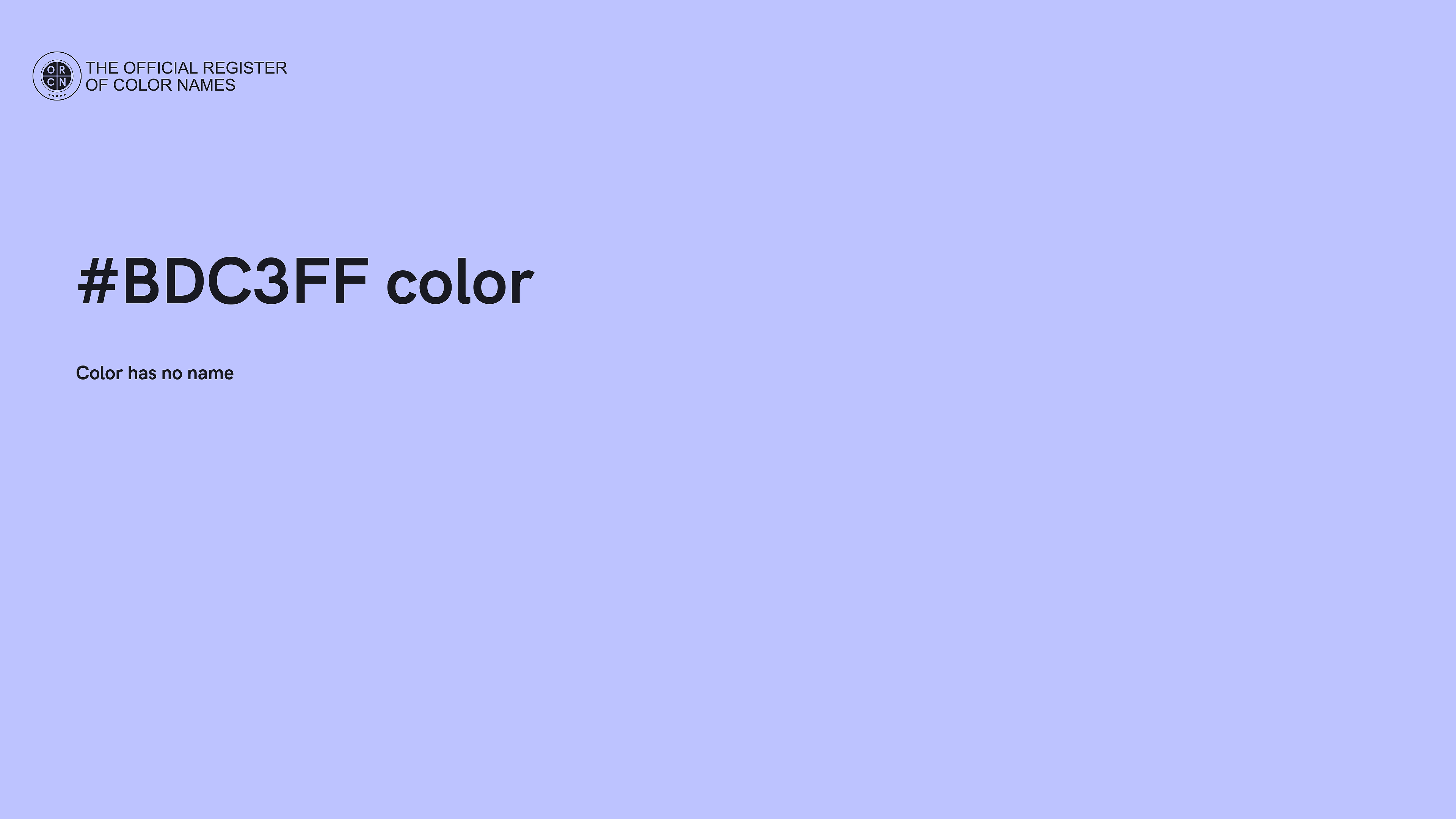 The digital color HEX #BDC3FF belongs to the Blue Color Family featuring Full Saturation (Saturation Family) and Luminous (Brightness Family).