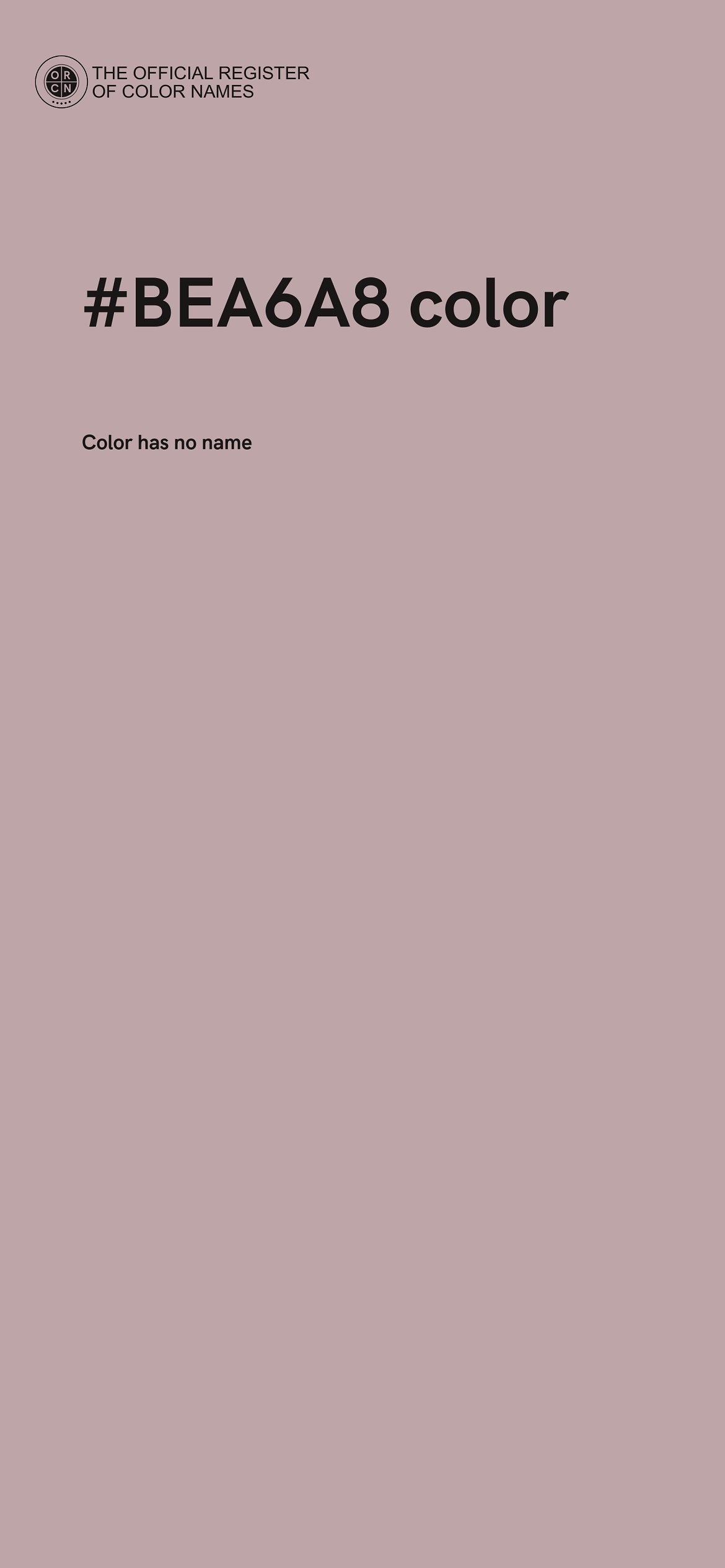 For printing in non digital world, #BEA6A8 is represented in CMYK as 0 Cyan, 9 Magenta, 9 Yellow, and 25 Black (Key) (C:0 M:9 Y:9 K:25).