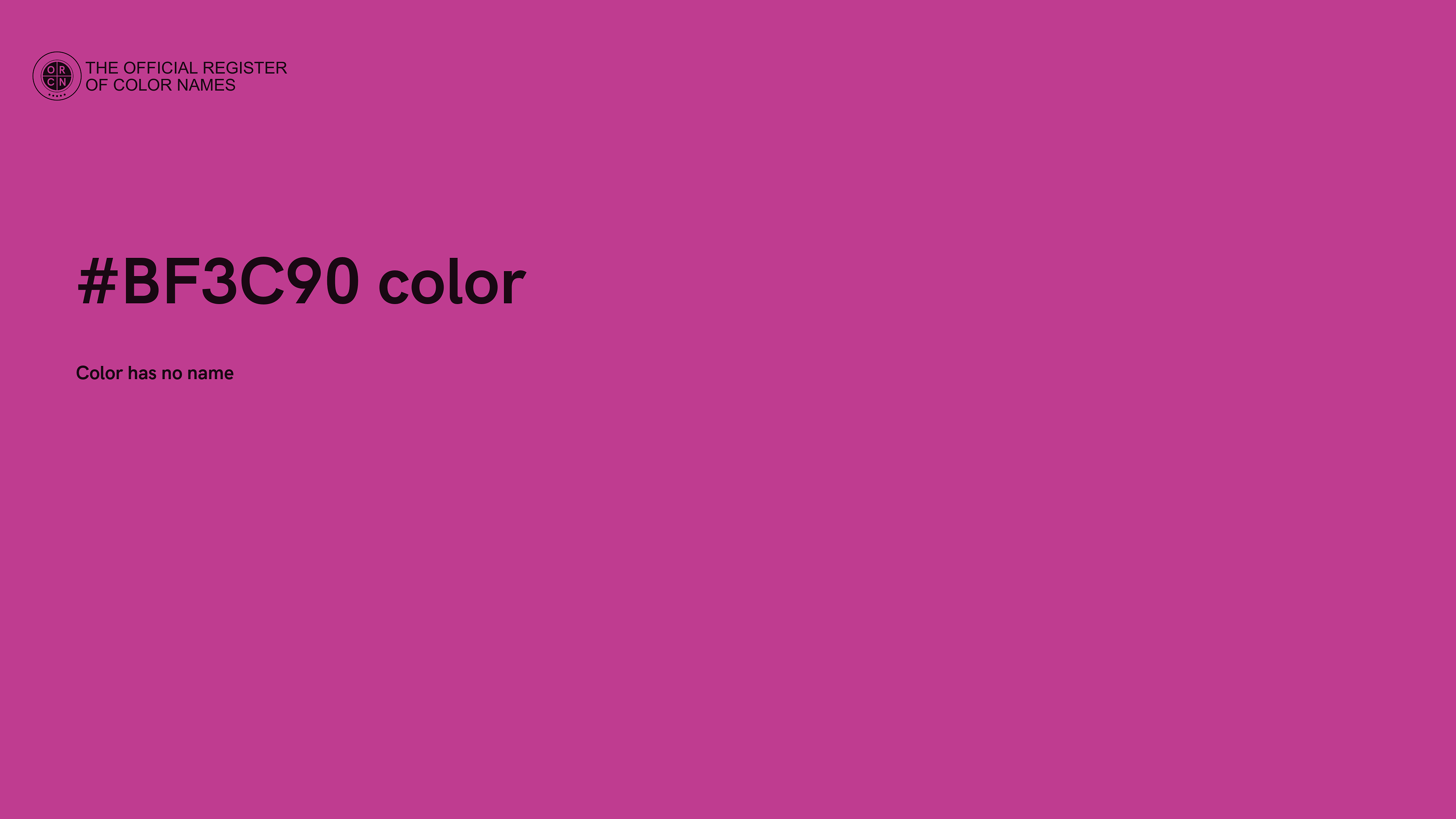 For printing in non digital world, #BF3C90 is represented in CMYK as 0 Cyan, 51 Magenta, 18 Yellow, and 25 Black (Key) (C:0 M:51 Y:18 K:25).