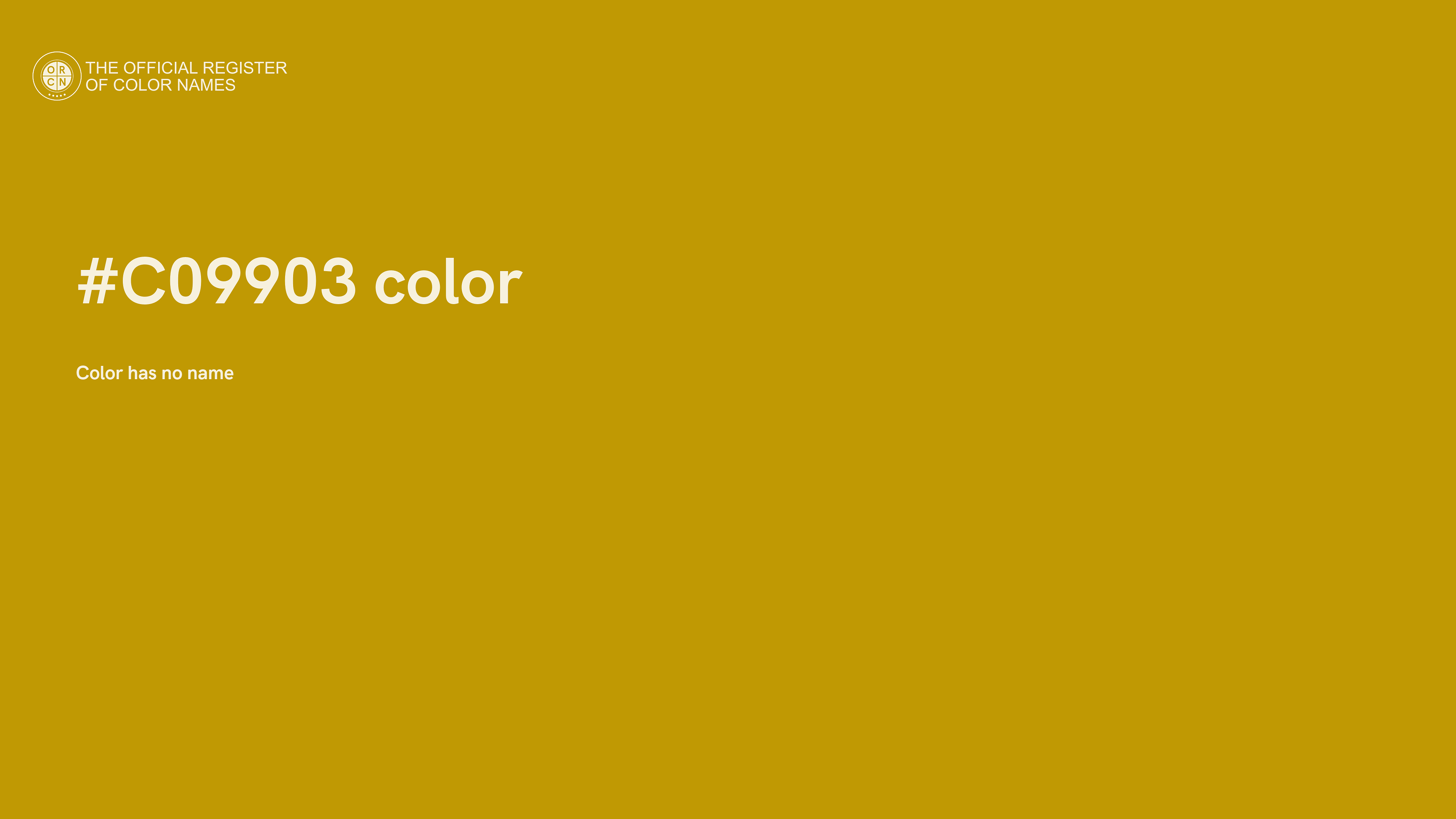 The digital color HEX #C09903 belongs to the Yellow Color Family featuring Full Saturation (Saturation Family) and Neutral (Brightness Family).