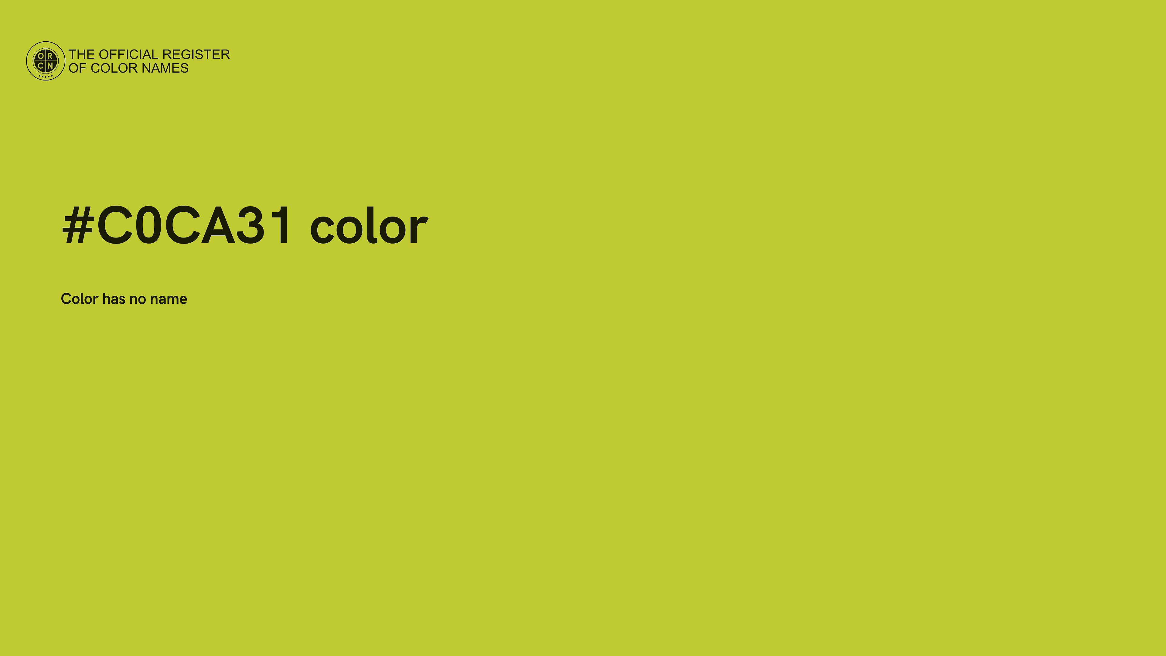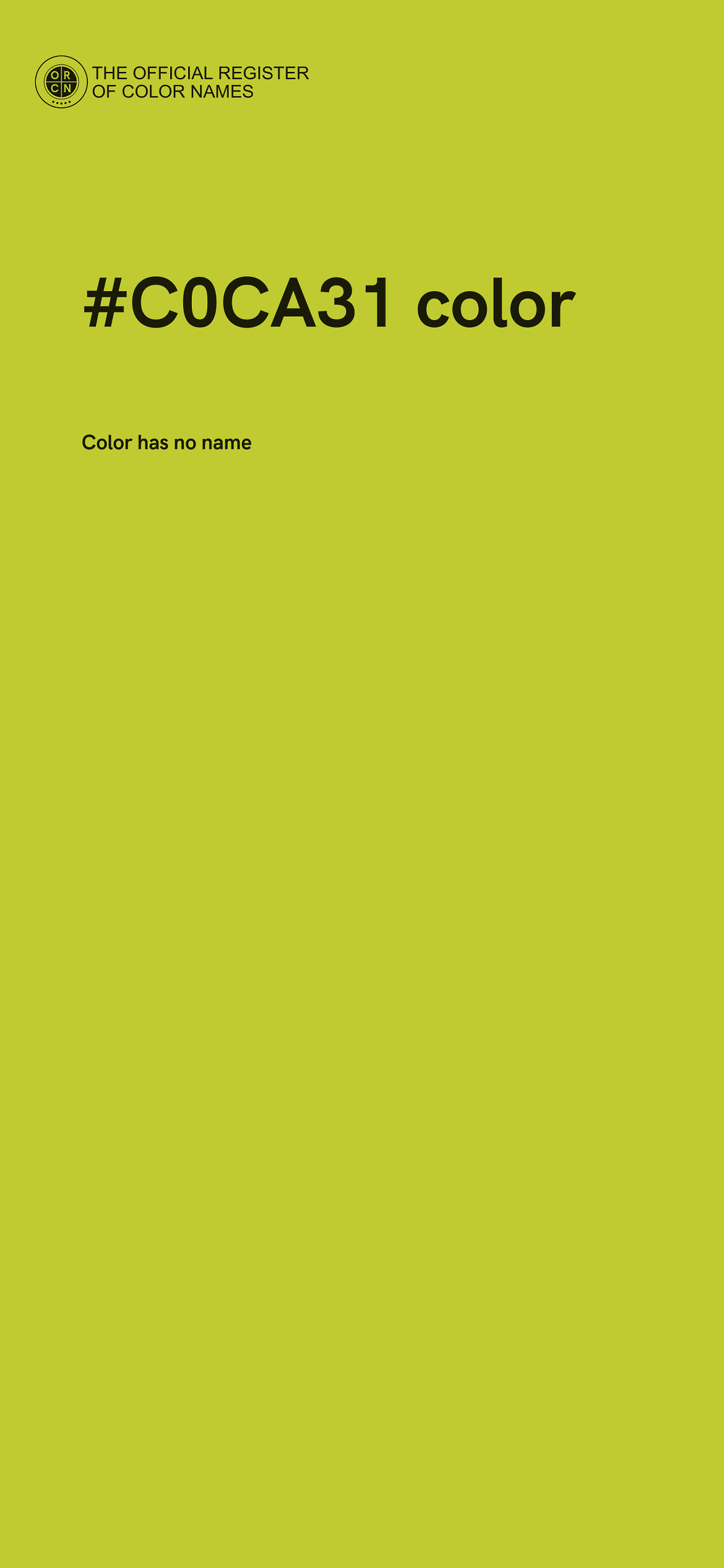 For printing in non digital world, #C0CA31 is represented in CMYK as 4 Cyan, 0 Magenta, 60 Yellow, and 21 Black (Key) (C:4 M:0 Y:60 K:21).