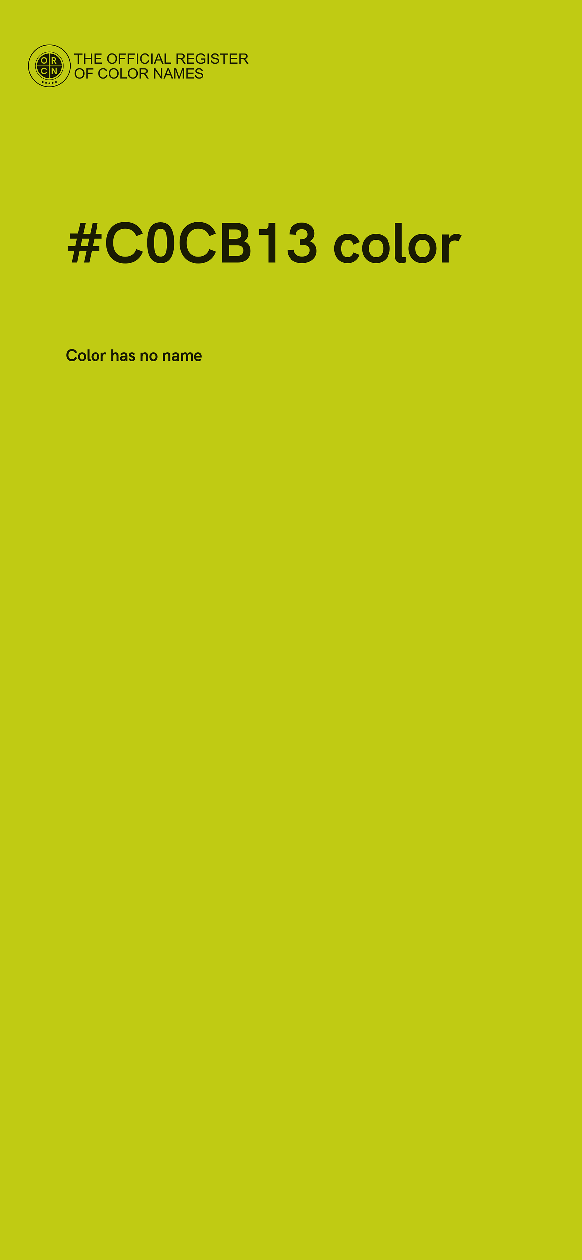 For printing in non digital world, #C0CB13 is represented in CMYK as 4 Cyan, 0 Magenta, 72 Yellow, and 20 Black (Key) (C:4 M:0 Y:72 K:20).