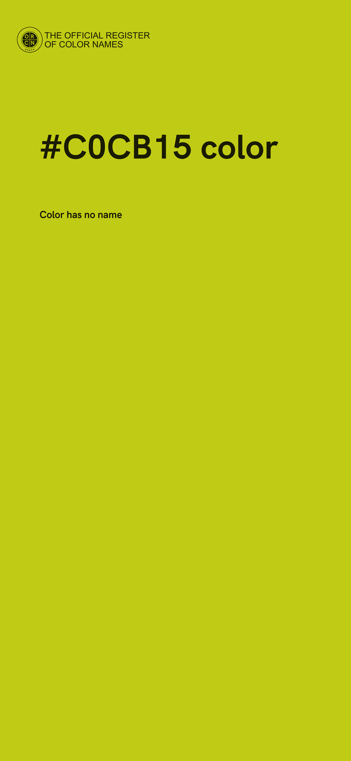 For printing in non digital world, #C0CB15 is represented in CMYK as 4 Cyan, 0 Magenta, 71 Yellow, and 20 Black (Key) (C:4 M:0 Y:71 K:20).