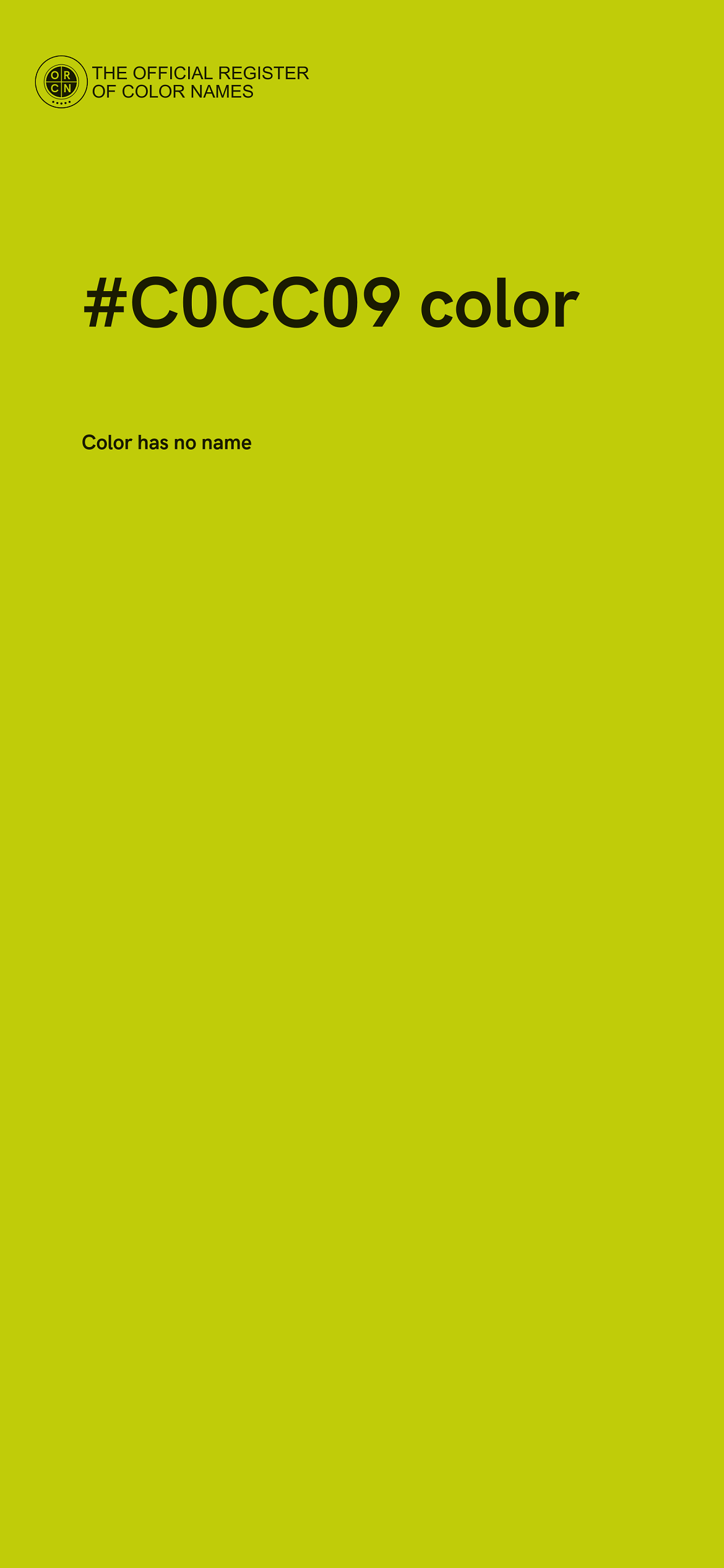 For printing in non digital world, #C0CC09 is represented in CMYK as 5 Cyan, 0 Magenta, 76 Yellow, and 20 Black (Key) (C:5 M:0 Y:76 K:20).