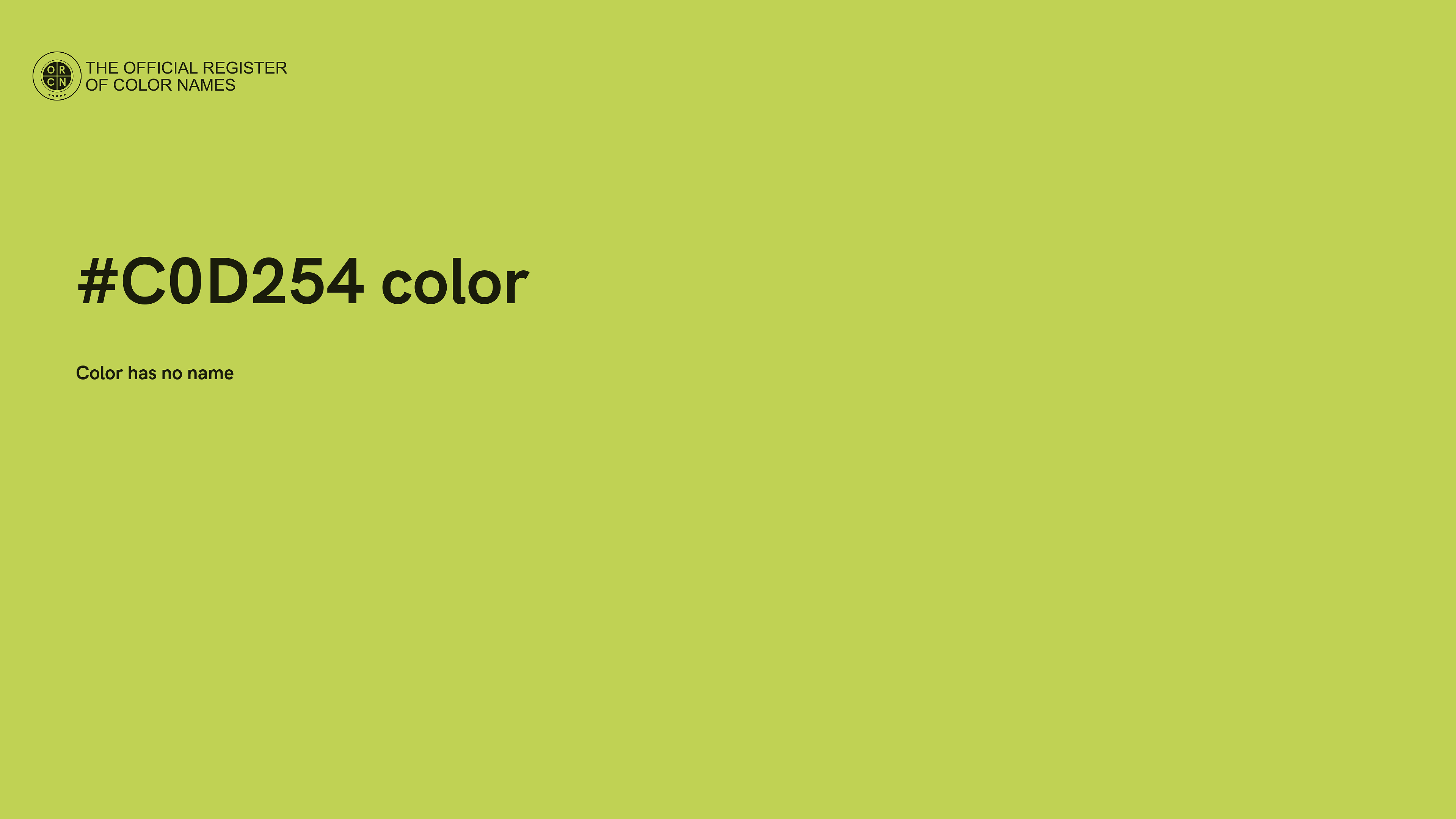 For printing in non digital world, #C0D254 is represented in CMYK as 7 Cyan, 0 Magenta, 49 Yellow, and 18 Black (Key) (C:7 M:0 Y:49 K:18).