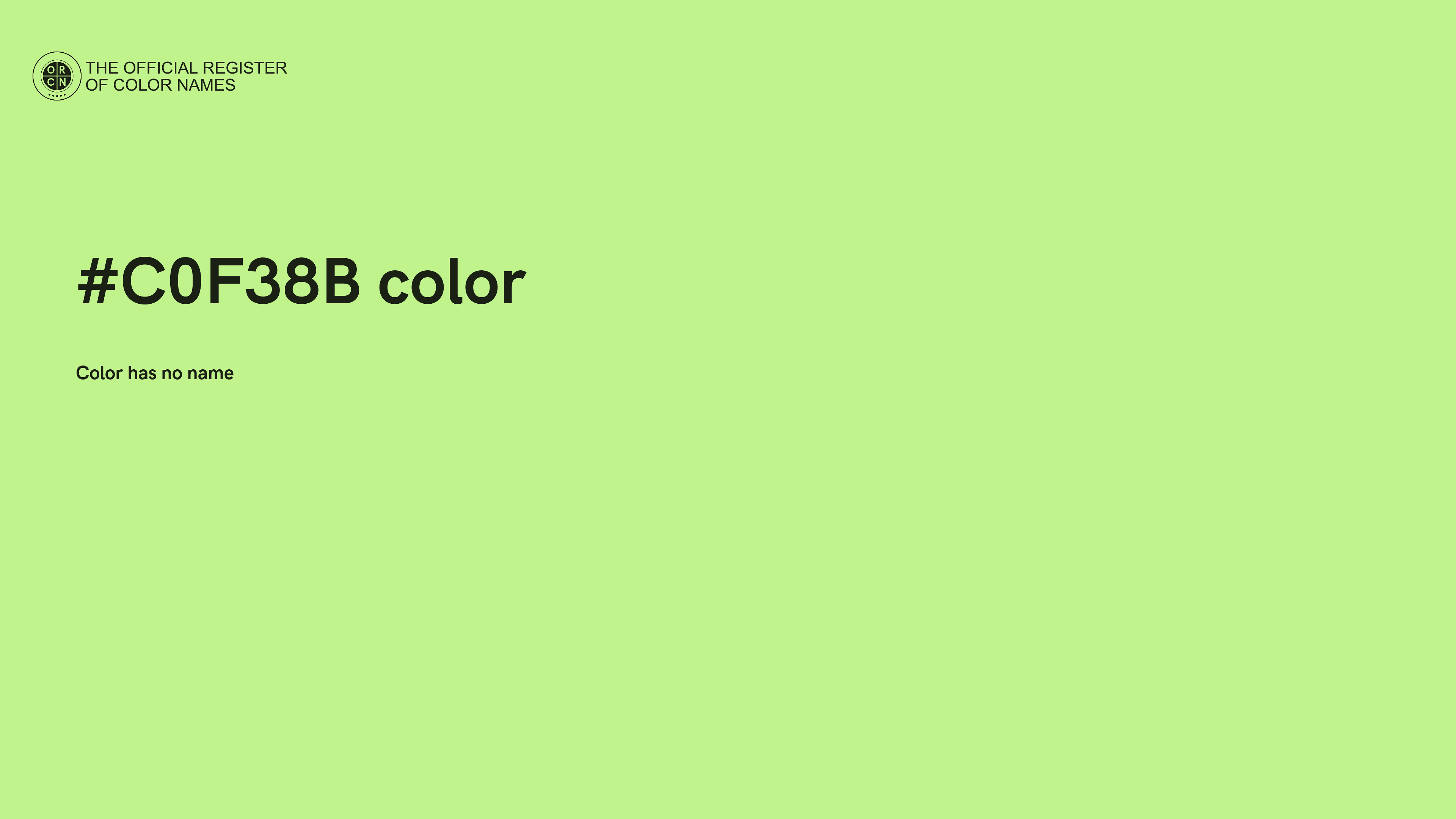For printing in non digital world, #C0F38B is represented in CMYK as 20 Cyan, 0 Magenta, 41 Yellow, and 5 Black (Key) (C:20 M:0 Y:41 K:5).
