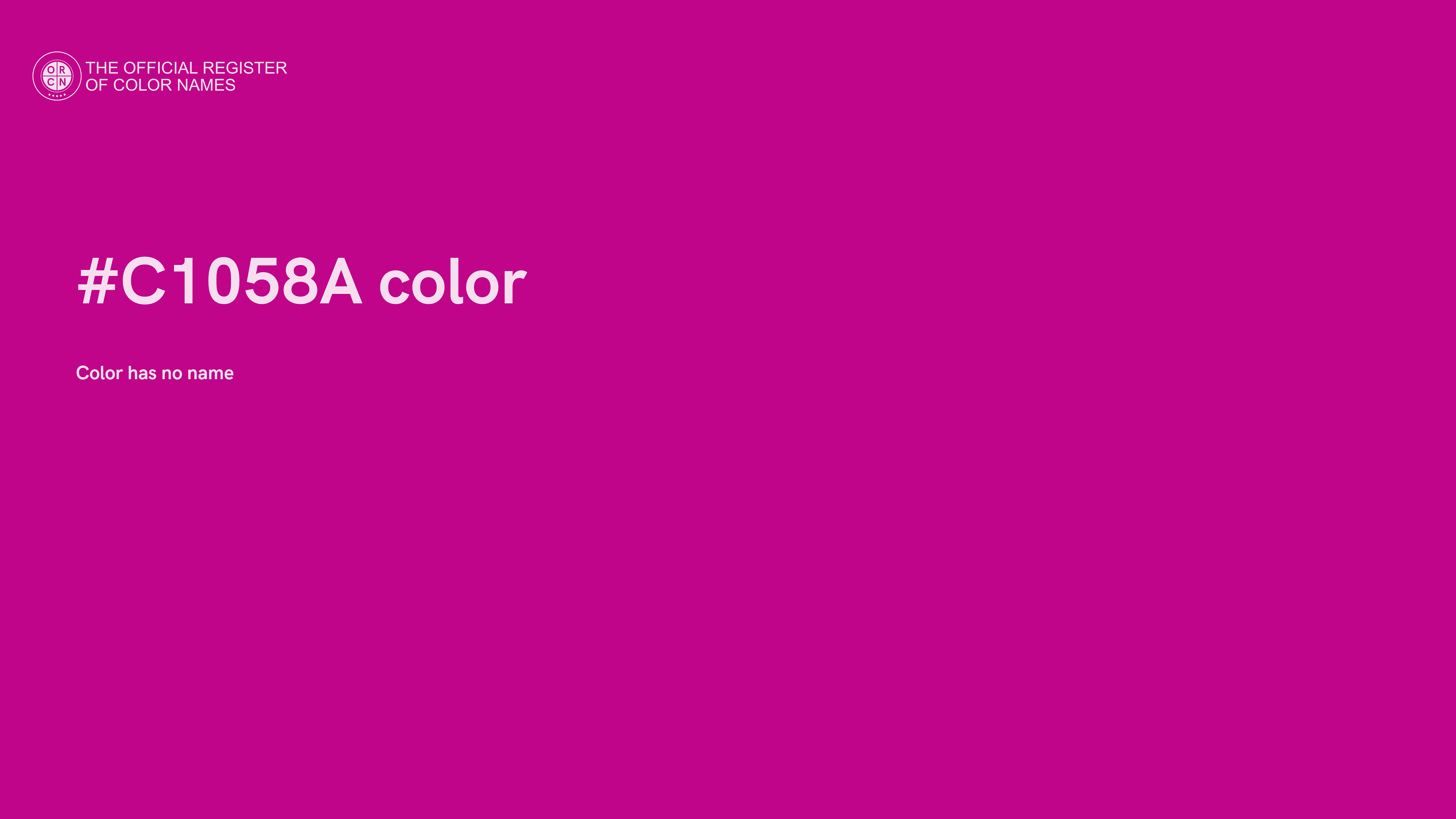 For printing in non digital world, #C1058A is represented in CMYK as 0 Cyan, 74 Magenta, 22 Yellow, and 24 Black (Key) (C:0 M:74 Y:22 K:24).