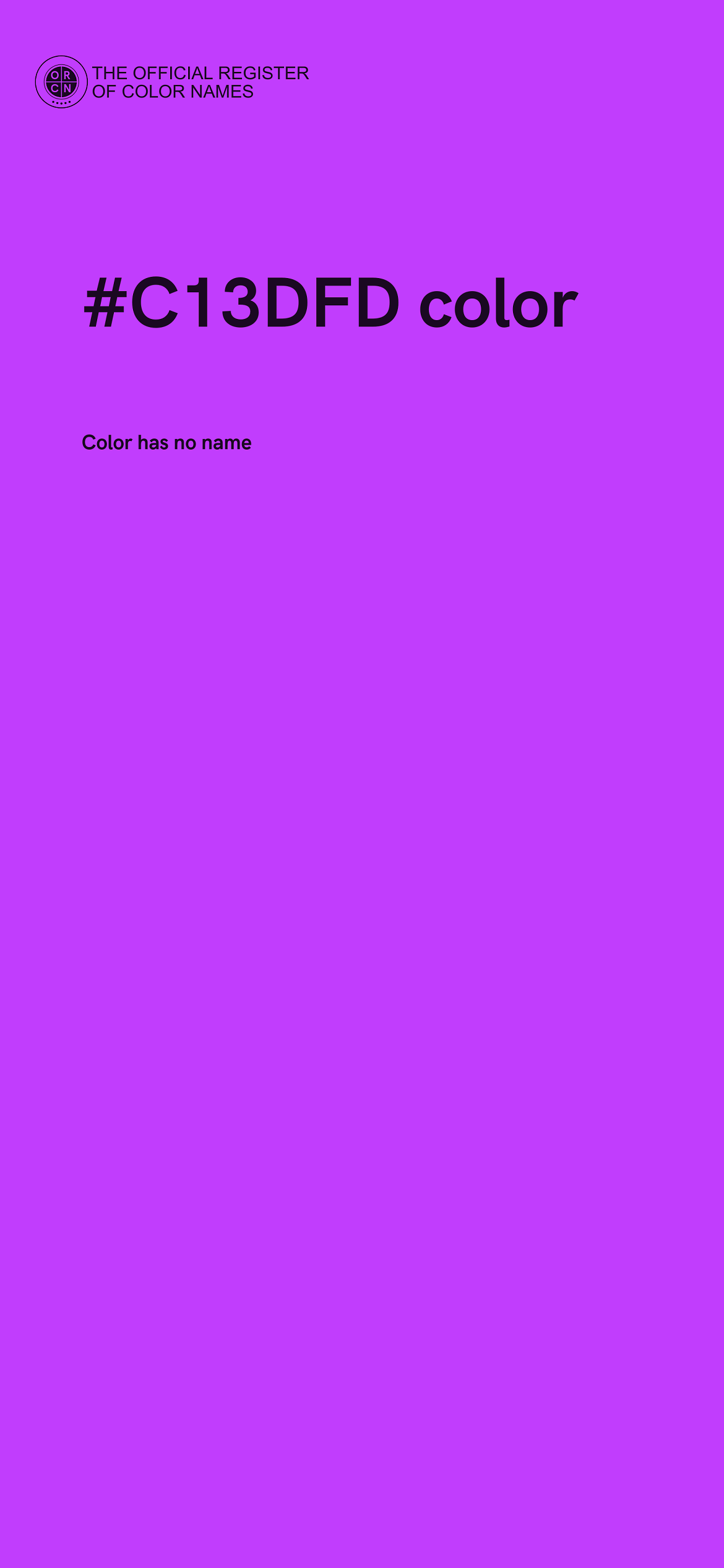 The digital color HEX #C13DFD belongs to the Violet Color Family featuring Full Saturation (Saturation Family) and Very Light (Brightness Family).