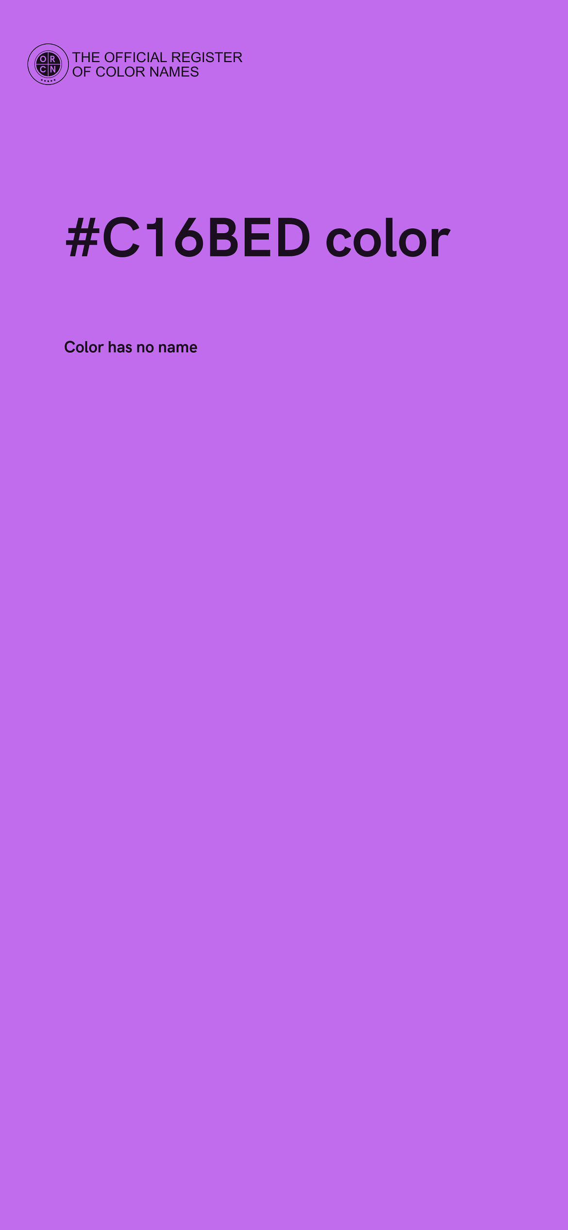 The digital color HEX #C16BED belongs to the Violet Color Family featuring High Saturation (Saturation Family) and Very Light (Brightness Family).