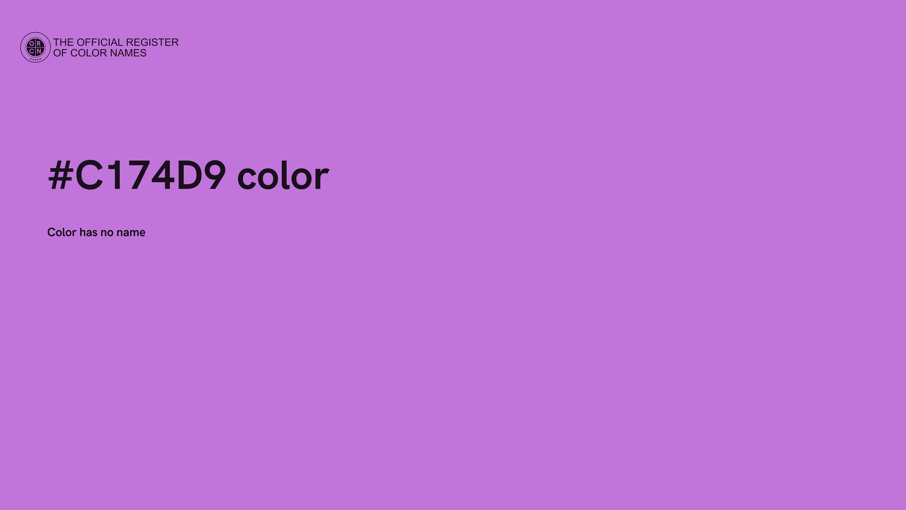 For printing in non digital world, #C174D9 is represented in CMYK as 9 Cyan, 40 Magenta, 0 Yellow, and 15 Black (Key) (C:9 M:40 Y:0 K:15).