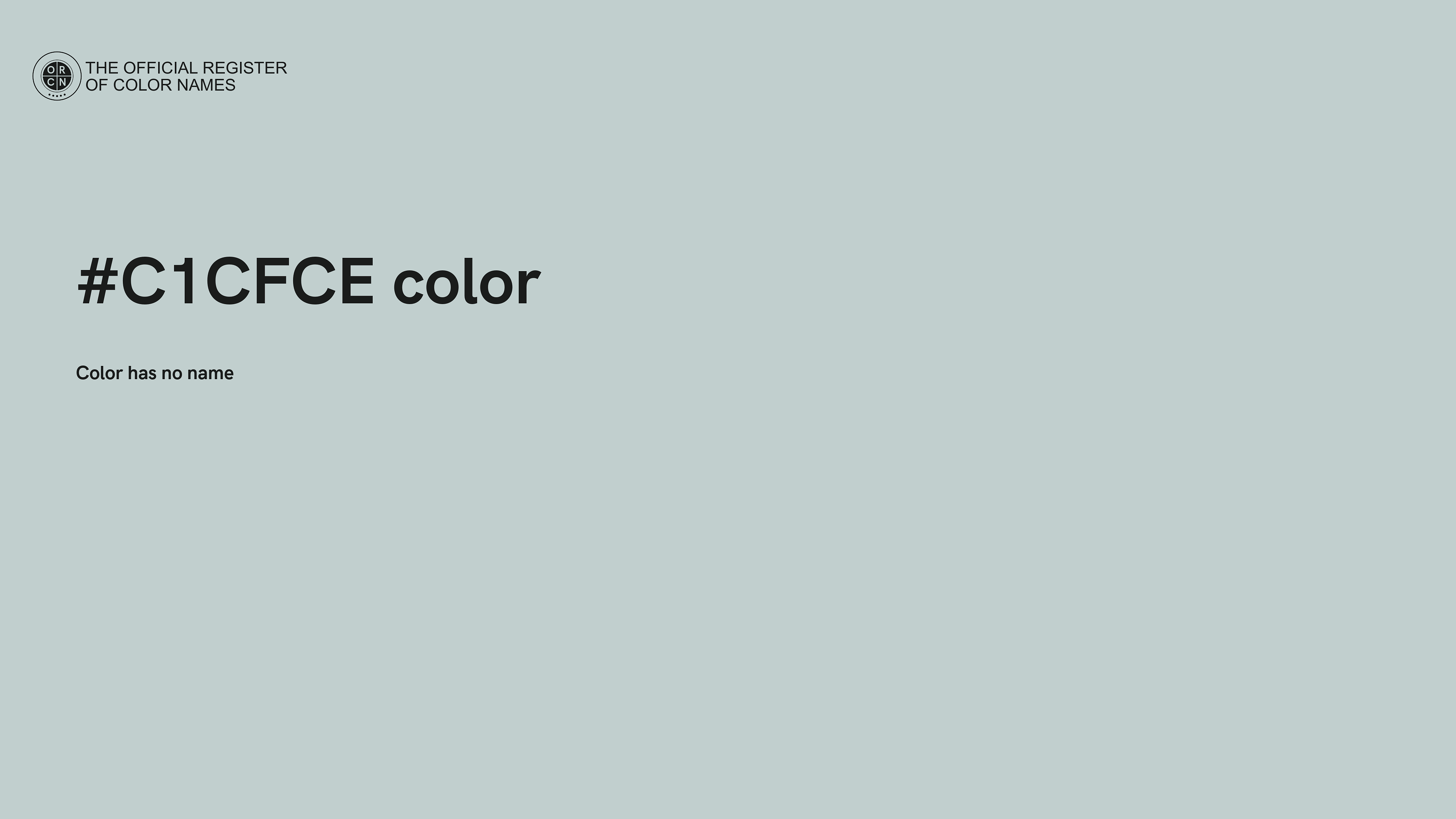 The digital color HEX #C1CFCE belongs to the Cyan Color Family featuring Low Saturation (Saturation Family) and Very Light (Brightness Family).