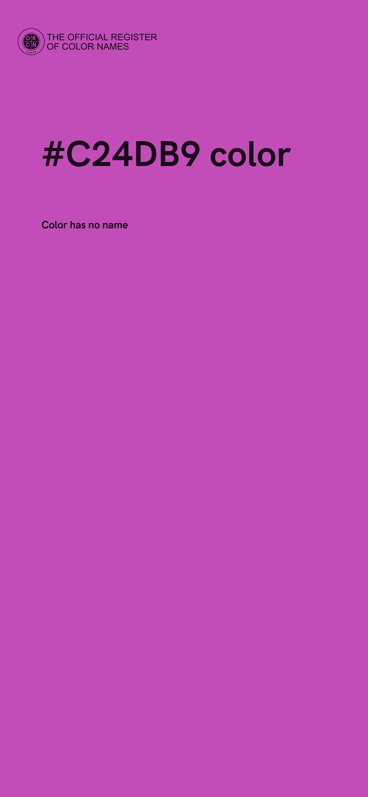 The digital color HEX #C24DB9 belongs to the Magenta Color Family featuring Moderate Saturation (Saturation Family) and Light (Brightness Family).