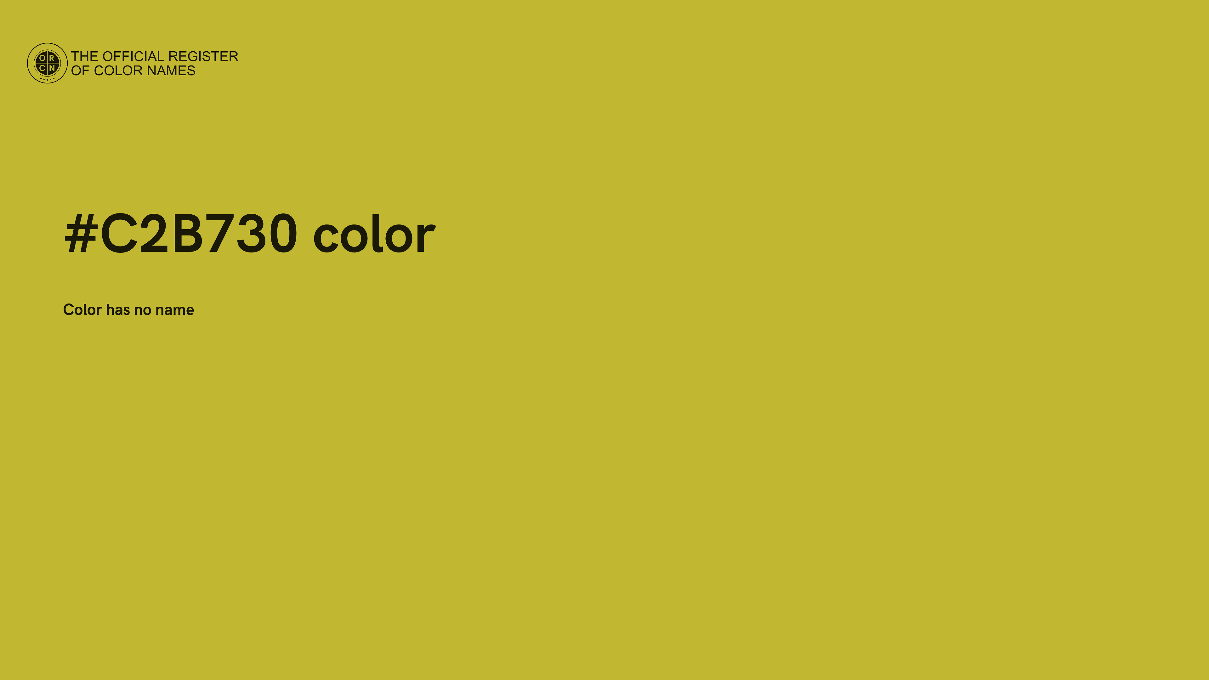 The digital color HEX #C2B730 belongs to the Yellow Color Family featuring High Saturation (Saturation Family) and Light (Brightness Family).