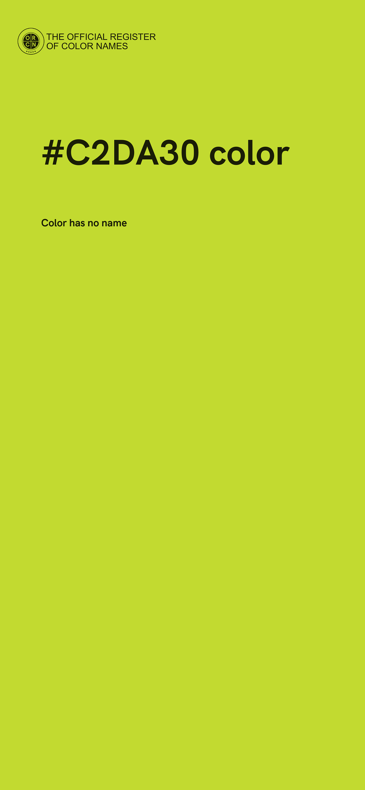 The digital color HEX #C2DA30 belongs to the Yellow Color Family featuring High Saturation (Saturation Family) and Light (Brightness Family).
