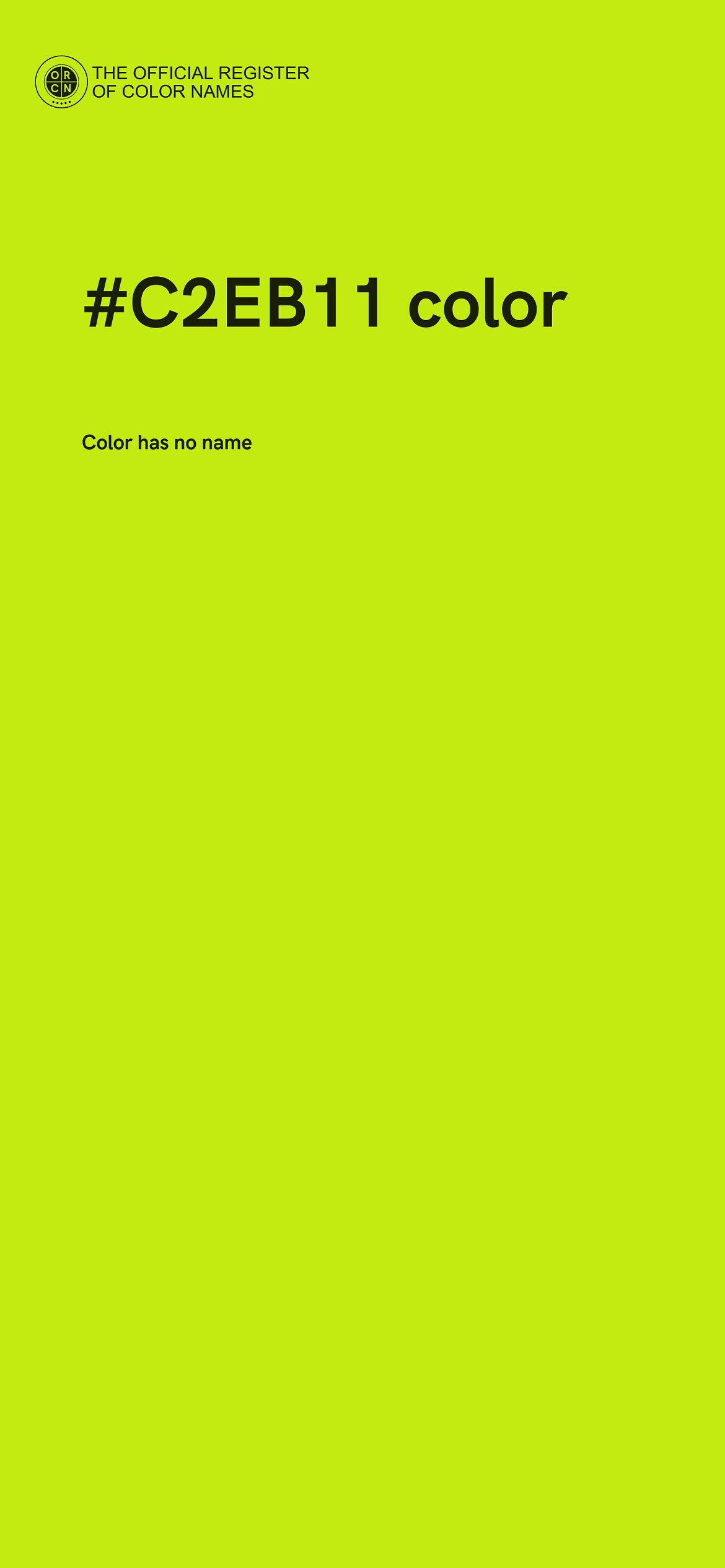 The digital color HEX #C2EB11 belongs to the Yellow Color Family featuring Full Saturation (Saturation Family) and Light (Brightness Family).