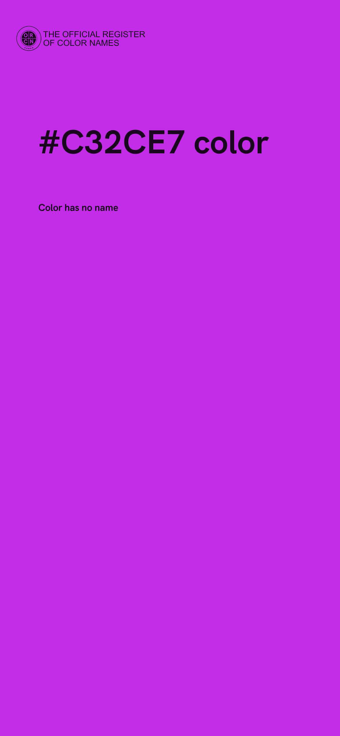 The digital color HEX #C32CE7 belongs to the Magenta Color Family featuring High Saturation (Saturation Family) and Light (Brightness Family).