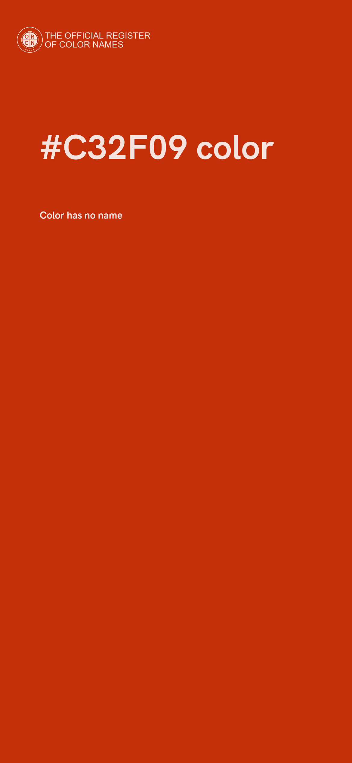 The digital color HEX #C32F09 belongs to the Red Color Family featuring Full Saturation (Saturation Family) and Light (Brightness Family).