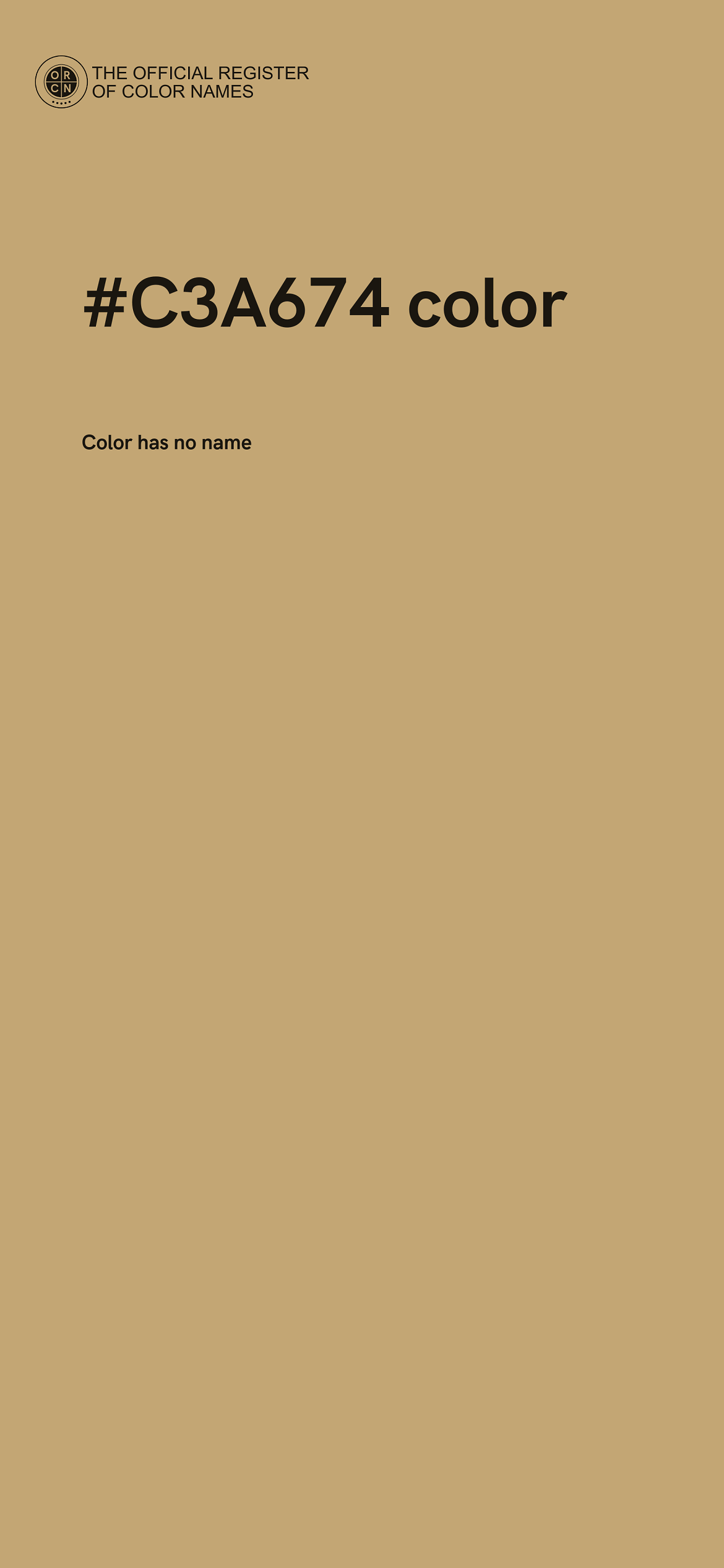 The digital color HEX #C3A674 belongs to the Orange Color Family featuring Moderate Saturation (Saturation Family) and Very Light (Brightness Family).