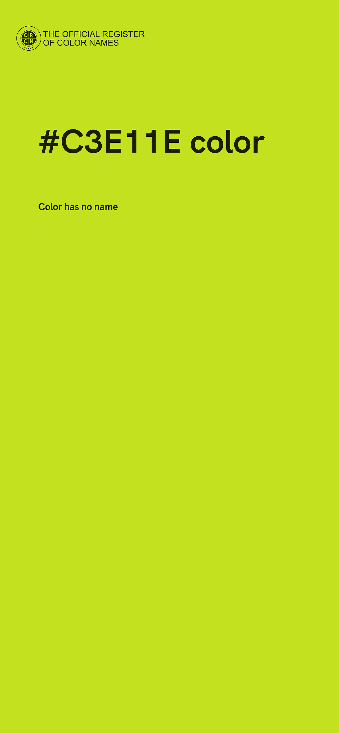 The digital color HEX #C3E11E belongs to the Yellow Color Family featuring High Saturation (Saturation Family) and Light (Brightness Family).