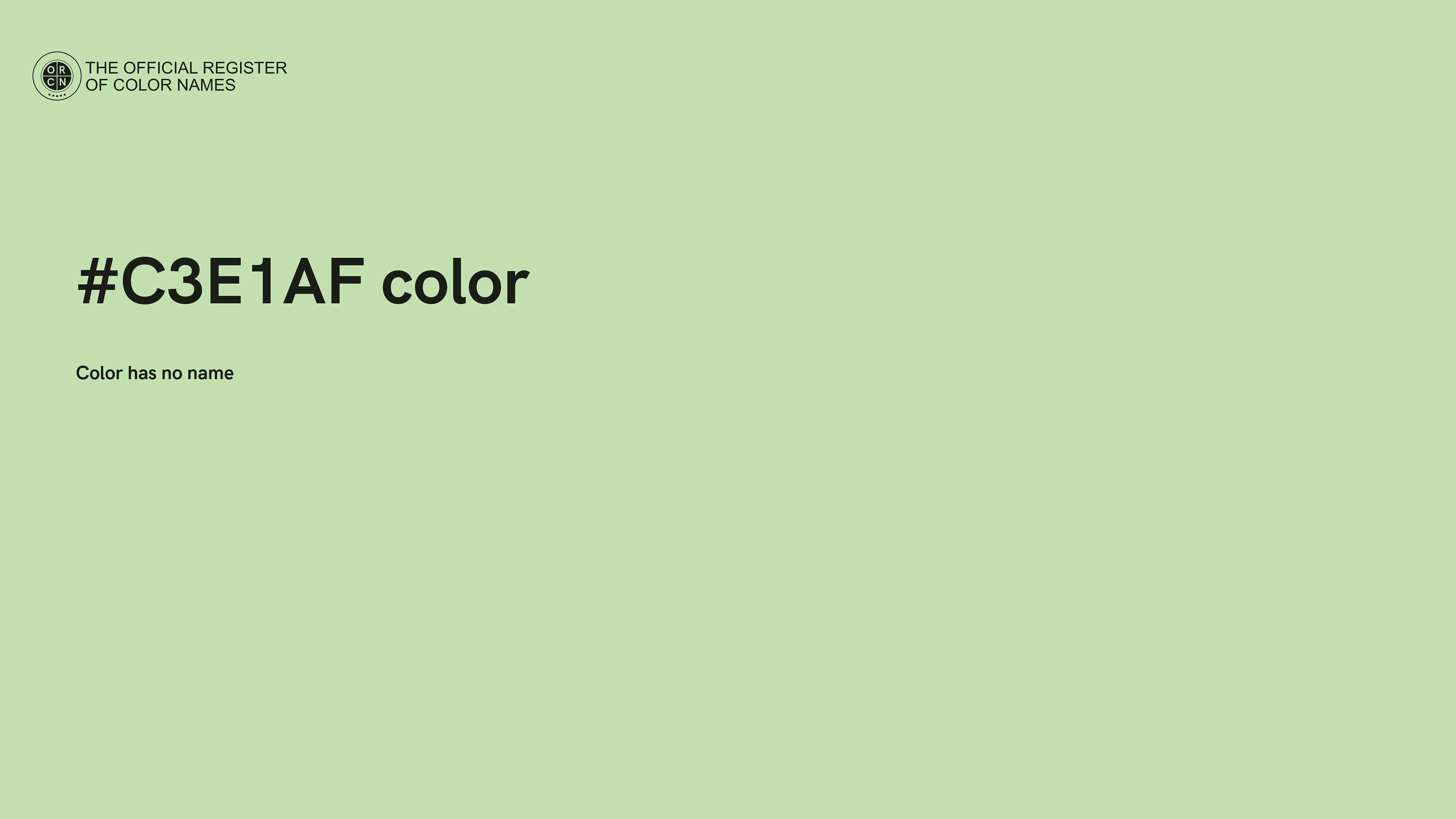The digital color HEX #C3E1AF belongs to the Chartreuse Color Family featuring Moderate Saturation (Saturation Family) and Very Light (Brightness Family).