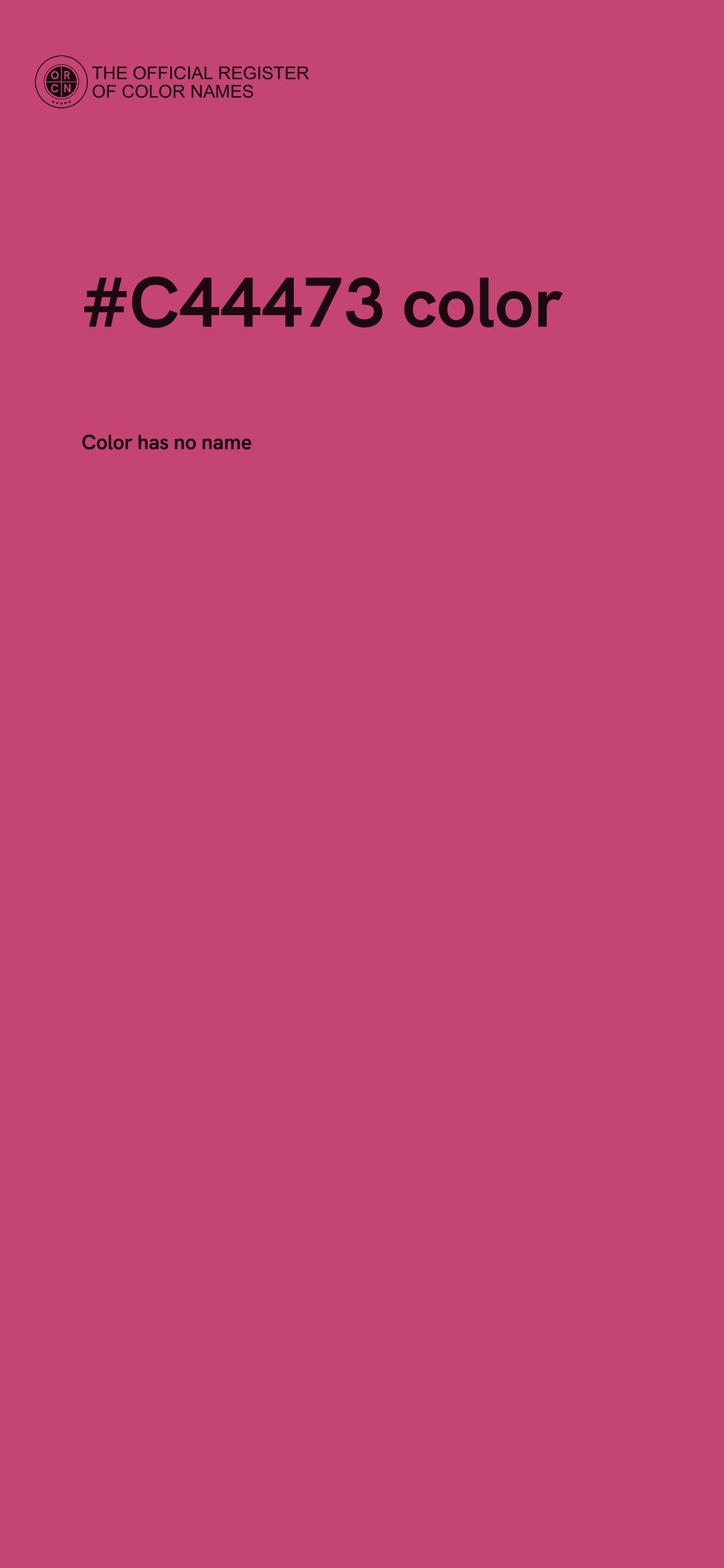 For printing in non digital world, #C44473 is represented in CMYK as 0 Cyan, 50 Magenta, 32 Yellow, and 23 Black (Key) (C:0 M:50 Y:32 K:23).