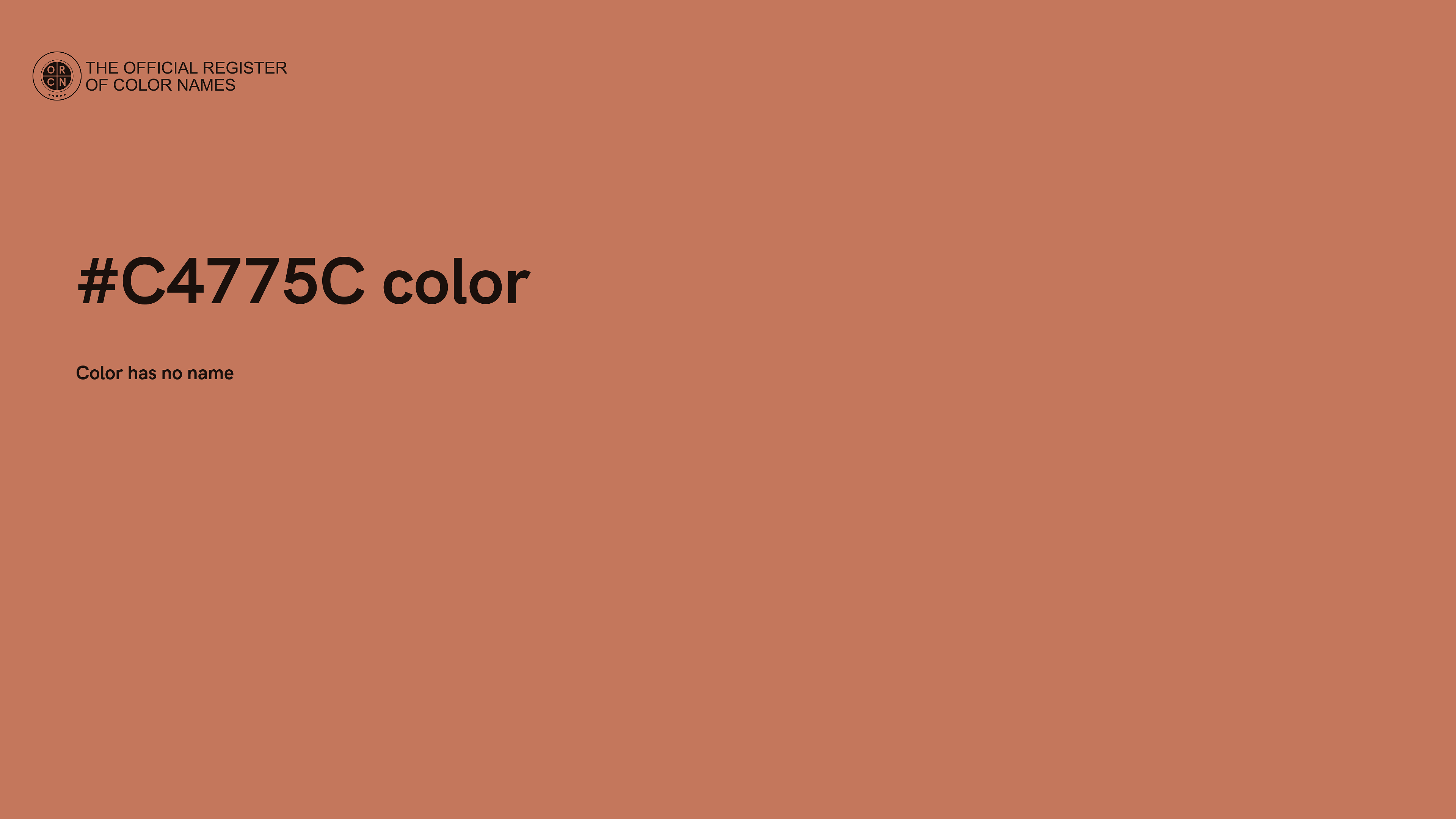 For printing in non digital world, #C4775C is represented in CMYK as 0 Cyan, 30 Magenta, 41 Yellow, and 23 Black (Key) (C:0 M:30 Y:41 K:23).