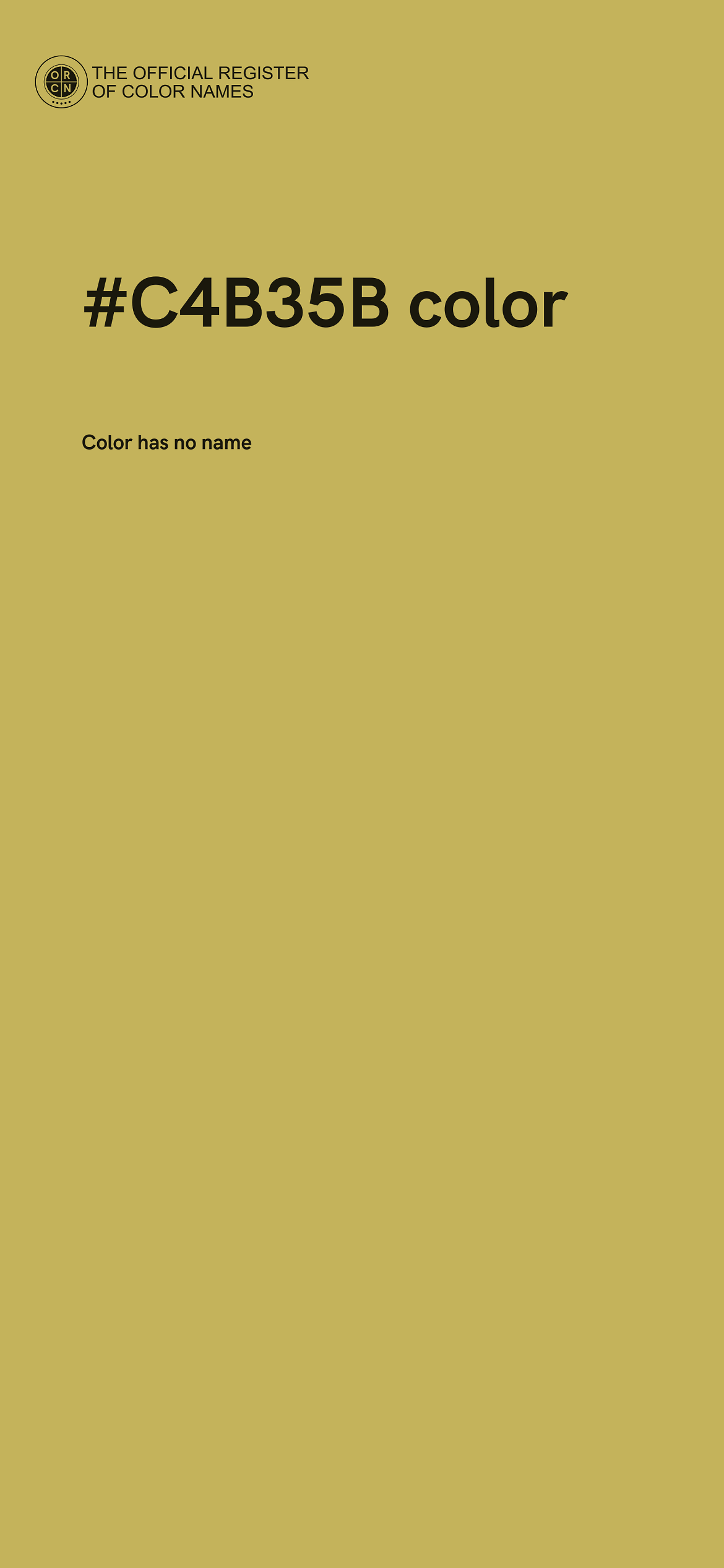 The digital color HEX #C4B35B belongs to the Yellow Color Family featuring Moderate Saturation (Saturation Family) and Light (Brightness Family).