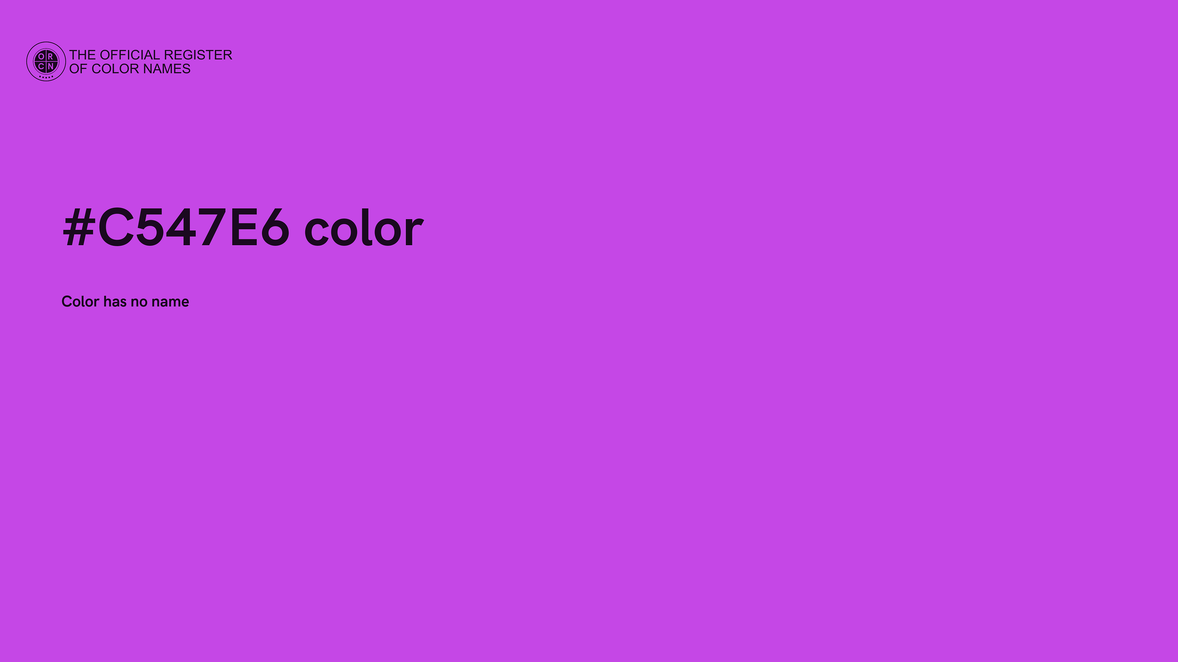 HEX code #C547E6 represent the color in hexadecimal format by combining three values – the amounts of Red, Green and Blue (RGB). Its RGB composition is 197, 71, 230 ( rgb(197, 71, 230) ), which breaks down into 77.3% of Red, 27.8% Green and 90.2% Blue.
