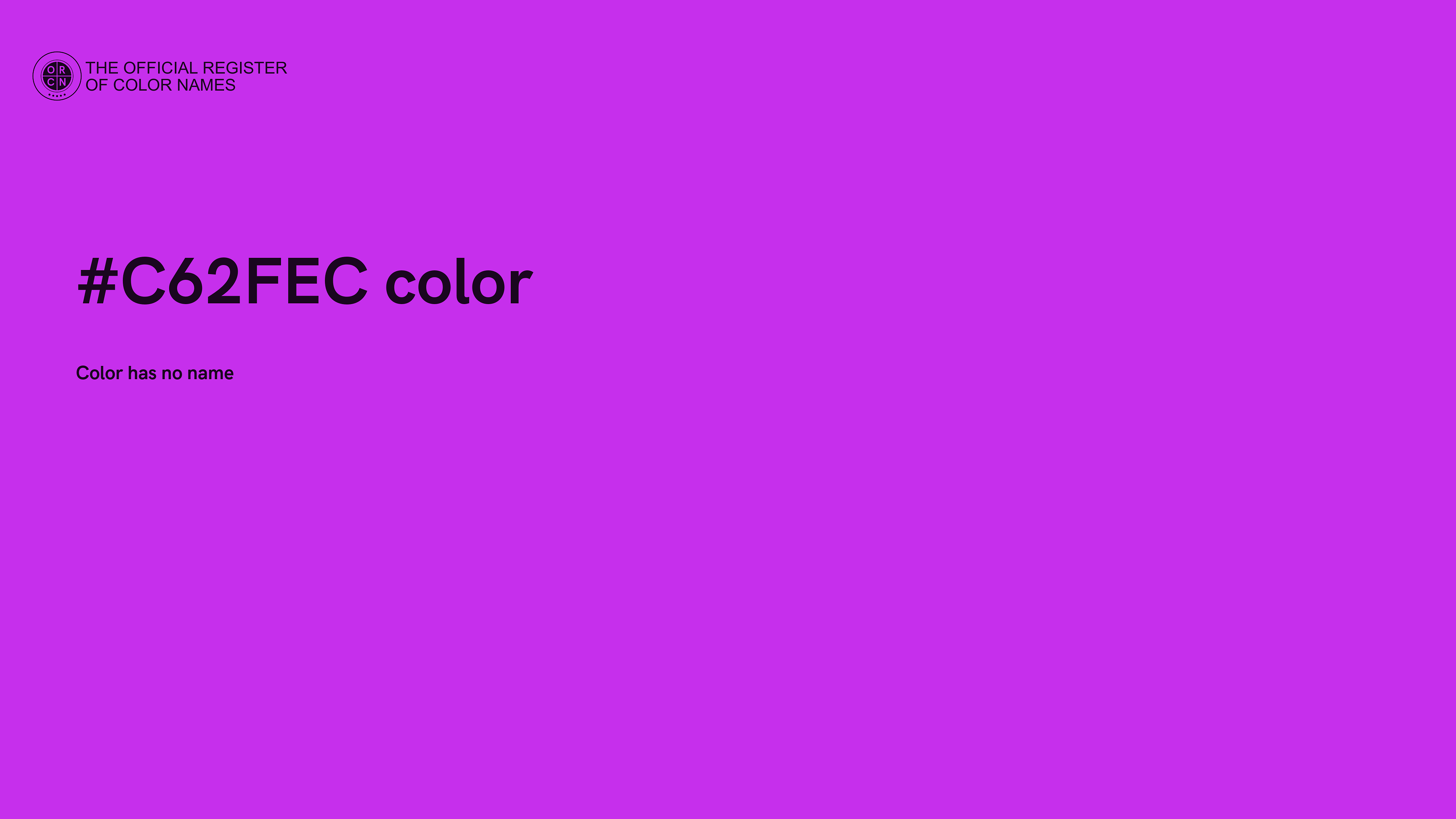 HEX code #C62FEC represent the color in hexadecimal format by combining three values – the amounts of Red, Green and Blue (RGB). Its RGB composition is 198, 47, 236 ( rgb(198, 47, 236) ), which breaks down into 77.6% of Red, 18.4% Green and 92.5% Blue.
