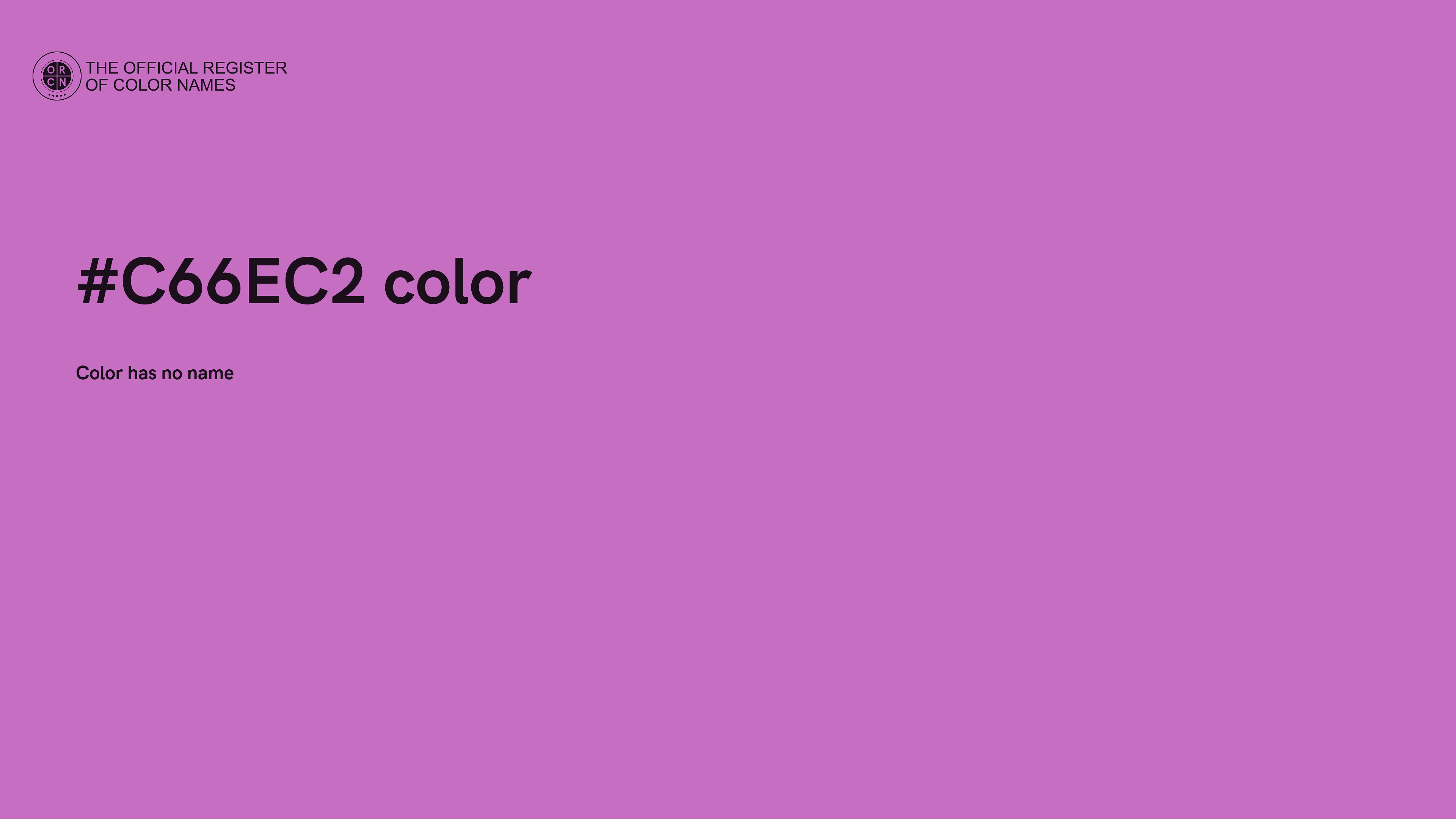 The digital color HEX #C66EC2 belongs to the Magenta Color Family featuring Moderate Saturation (Saturation Family) and Very Light (Brightness Family).