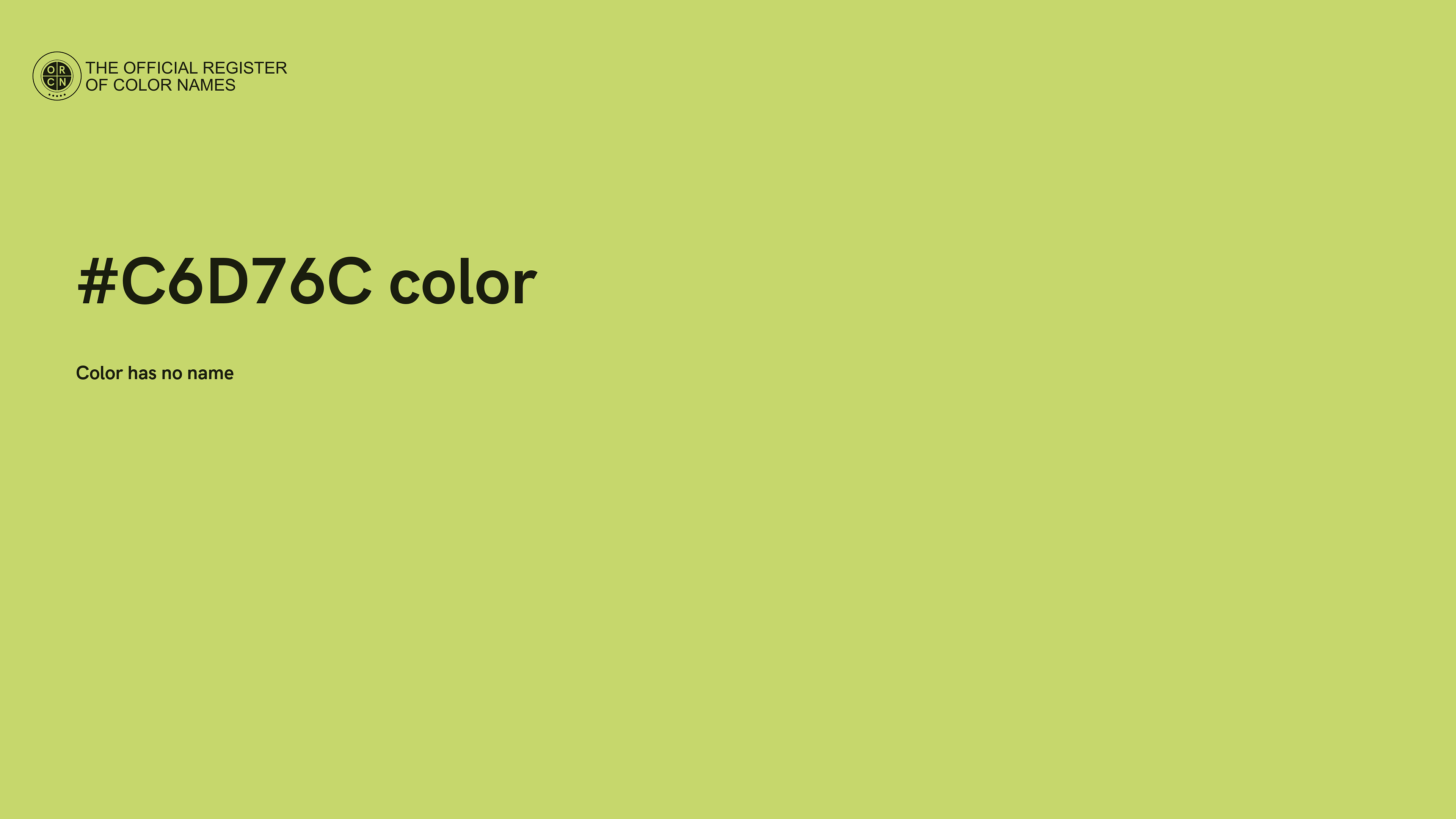 For printing in non digital world, #C6D76C is represented in CMYK as 7 Cyan, 0 Magenta, 42 Yellow, and 16 Black (Key) (C:7 M:0 Y:42 K:16).