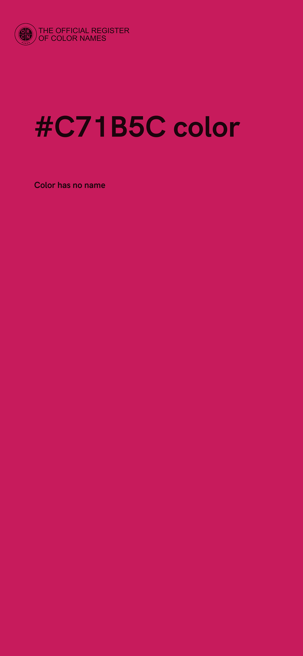 The digital color HEX #C71B5C belongs to the Rose Color Family featuring High Saturation (Saturation Family) and Light (Brightness Family).