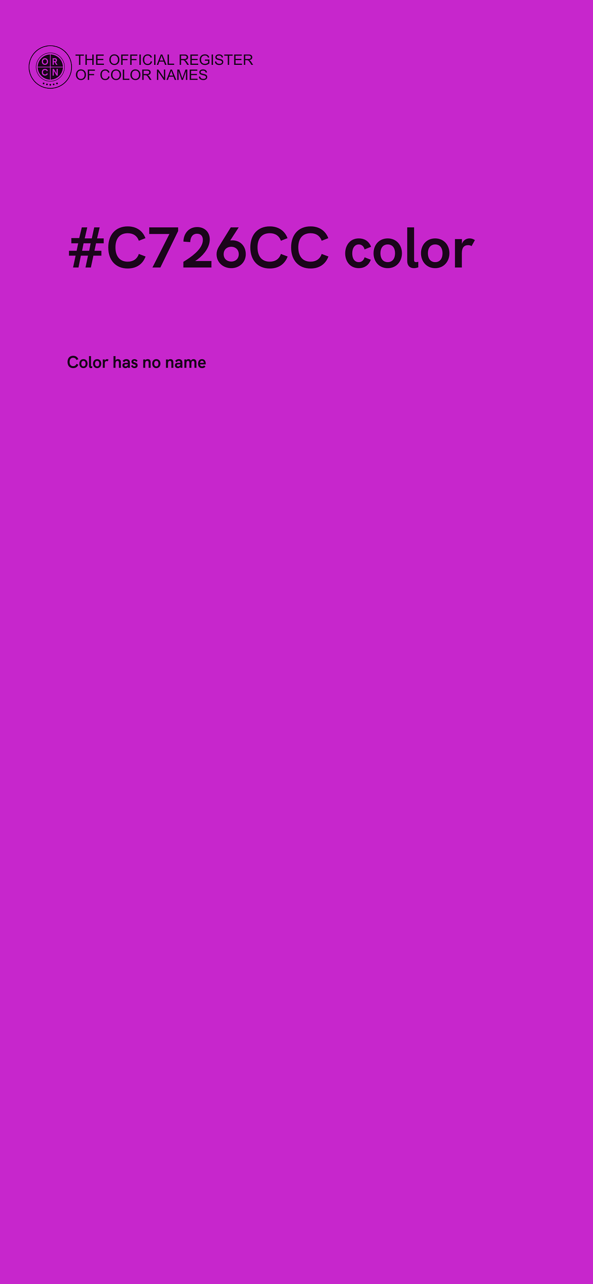The digital color HEX #C726CC belongs to the Magenta Color Family featuring High Saturation (Saturation Family) and Light (Brightness Family).