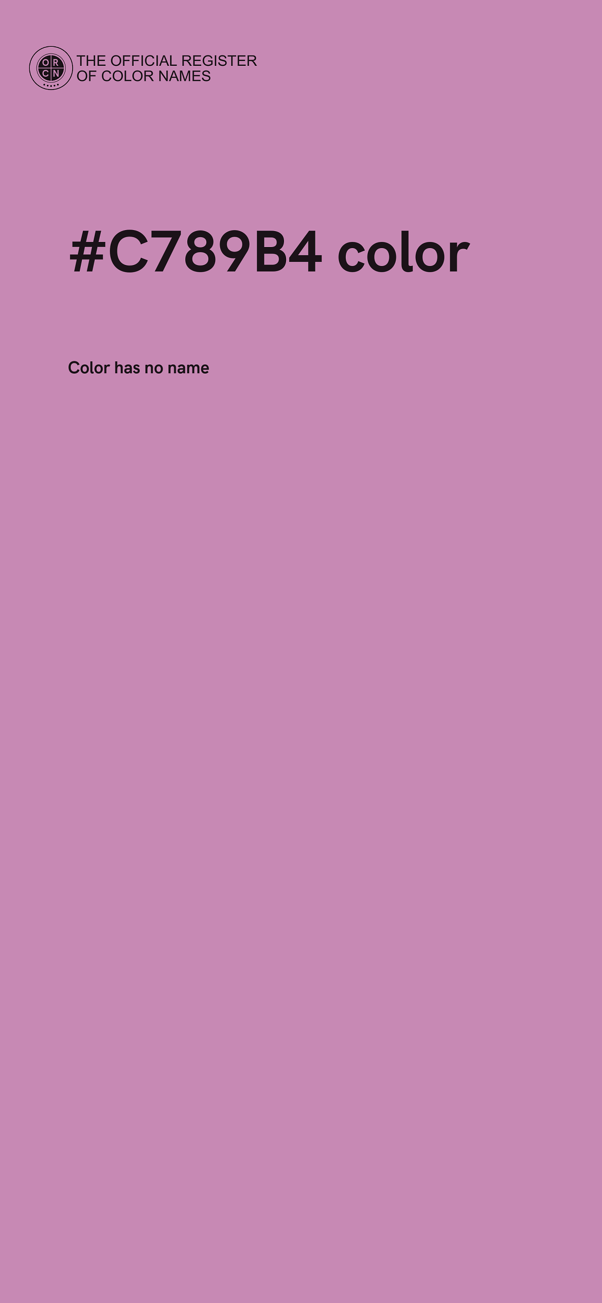The digital color HEX #C789B4 belongs to the Rose Color Family featuring Mild Saturation (Saturation Family) and Very Light (Brightness Family).