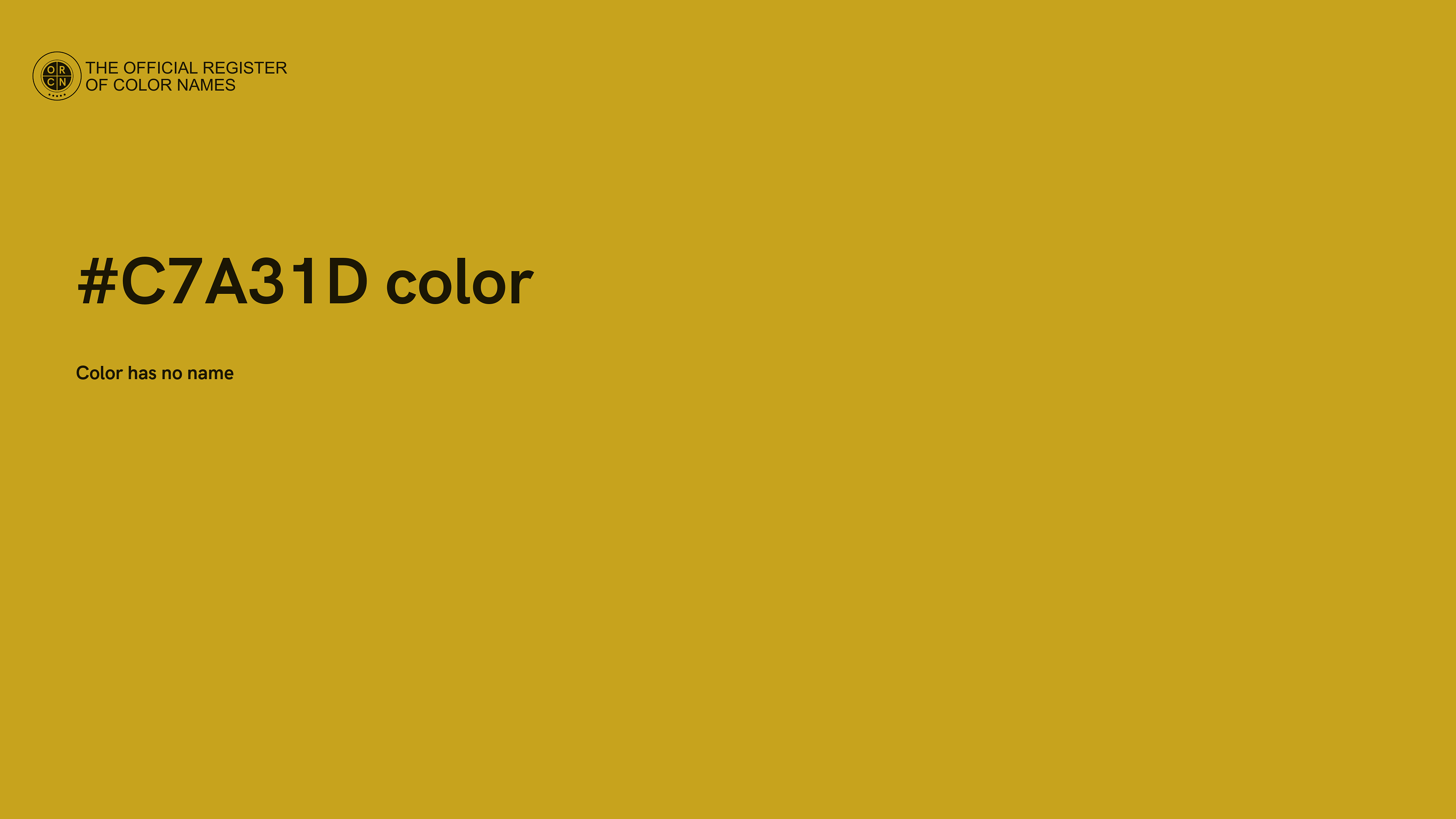 For printing in non digital world, #C7A31D is represented in CMYK as 0 Cyan, 14 Magenta, 67 Yellow, and 22 Black (Key) (C:0 M:14 Y:67 K:22).