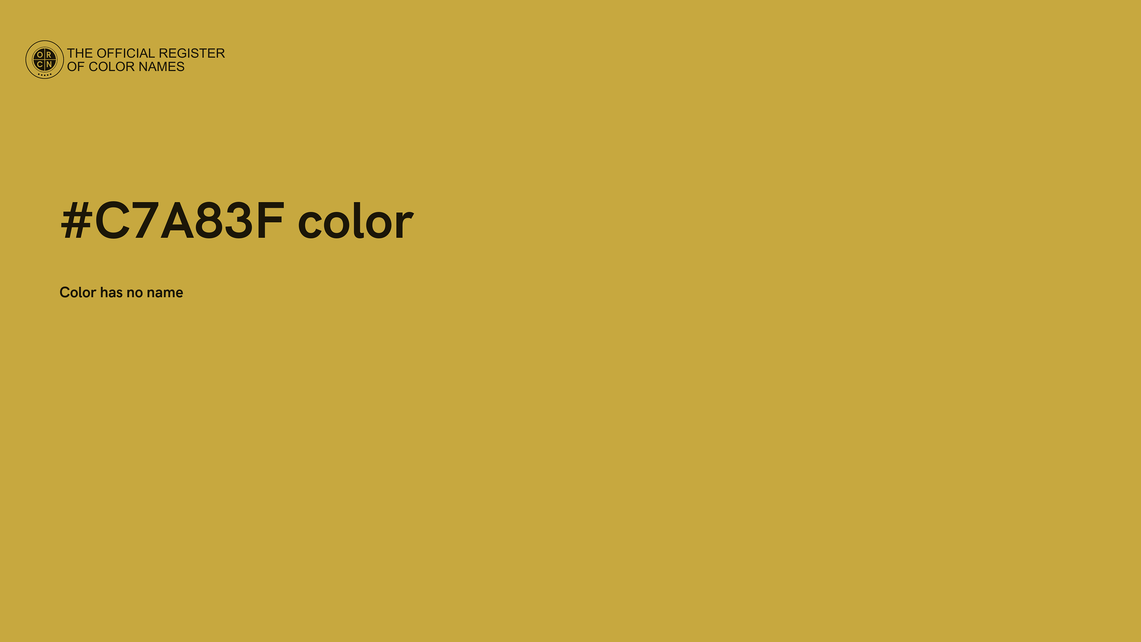 The digital color HEX #C7A83F belongs to the Yellow Color Family featuring Moderate Saturation (Saturation Family) and Light (Brightness Family).