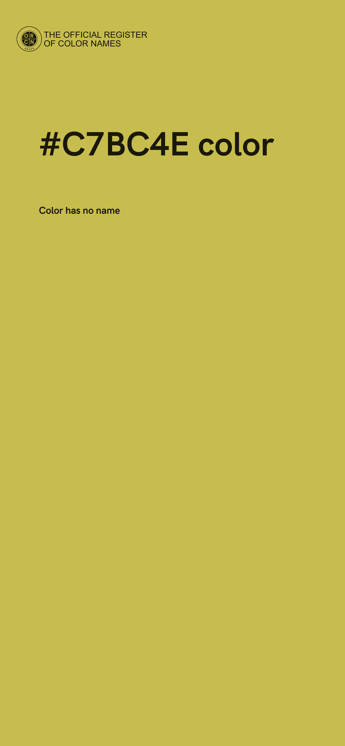 The digital color HEX #C7BC4E belongs to the Yellow Color Family featuring Moderate Saturation (Saturation Family) and Light (Brightness Family).