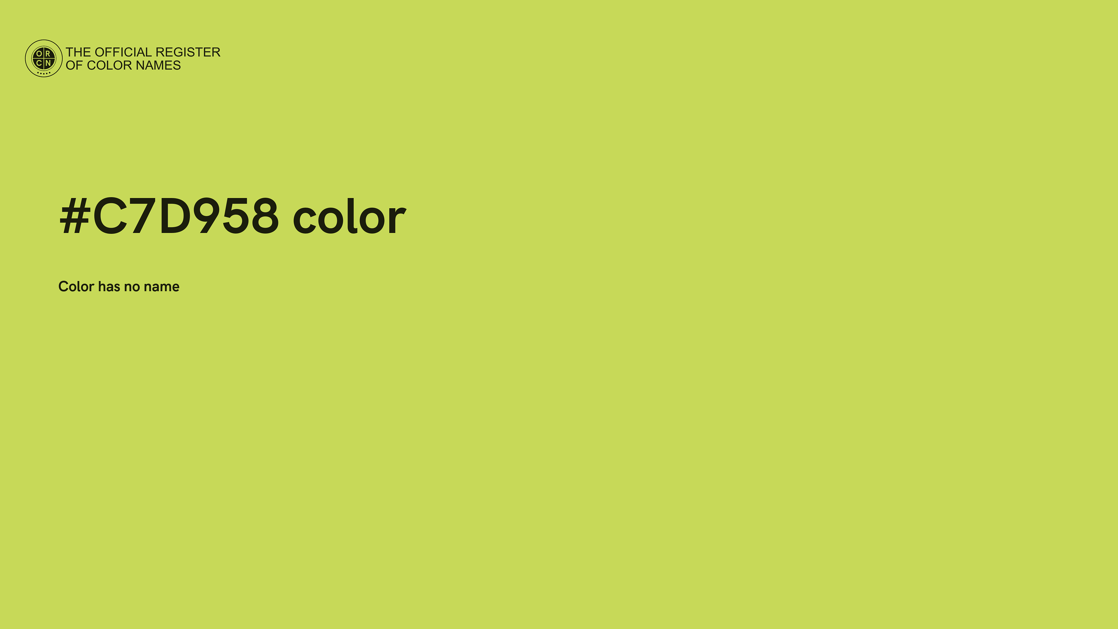 The digital color HEX #C7D958 belongs to the Yellow Color Family featuring High Saturation (Saturation Family) and Very Light (Brightness Family).