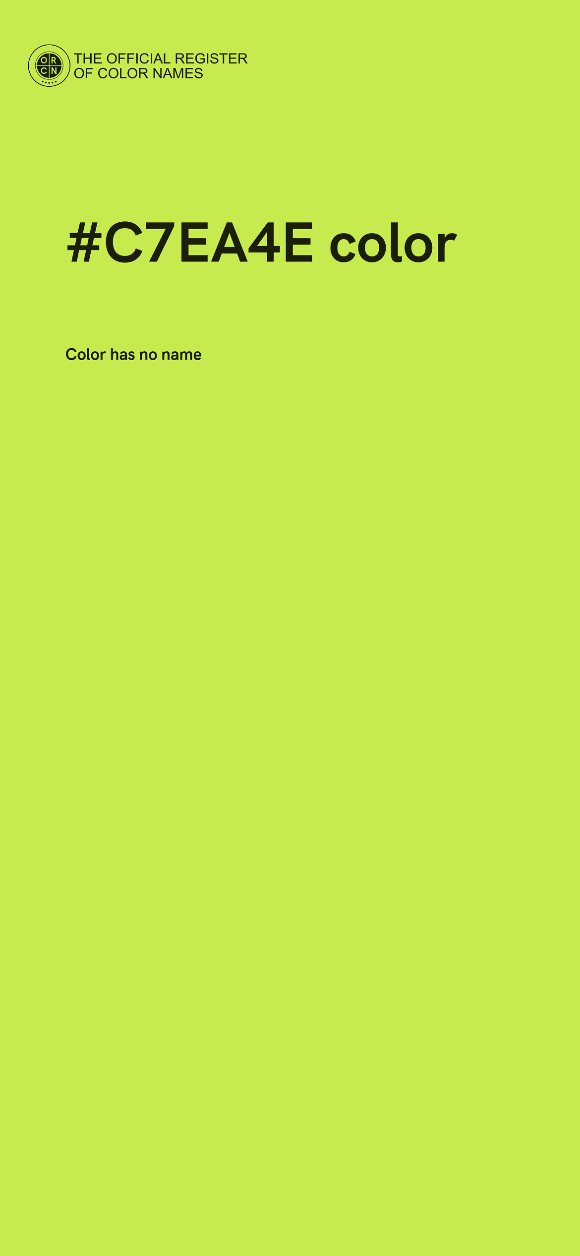The digital color HEX #C7EA4E belongs to the Yellow Color Family featuring High Saturation (Saturation Family) and Very Light (Brightness Family).