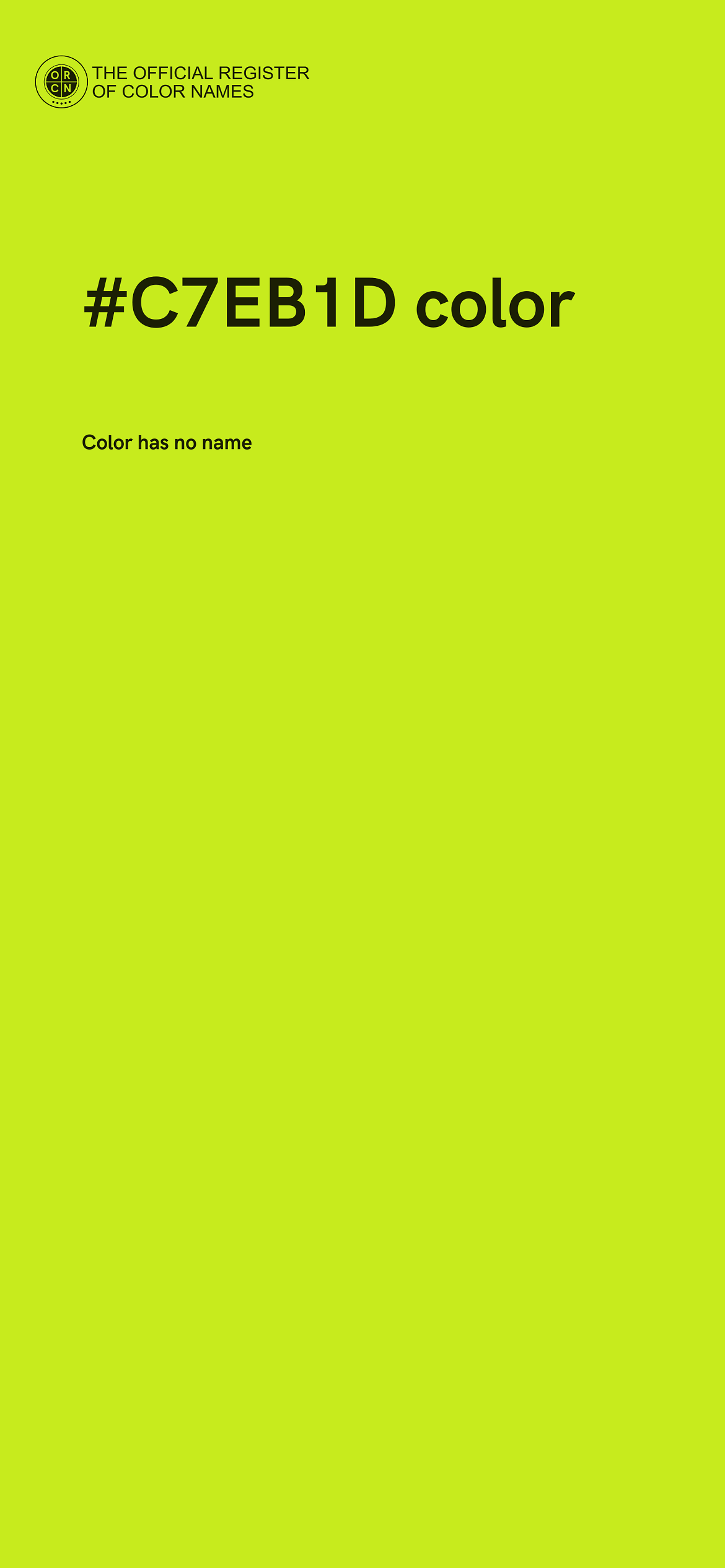 The digital color HEX #C7EB1D belongs to the Yellow Color Family featuring High Saturation (Saturation Family) and Light (Brightness Family).